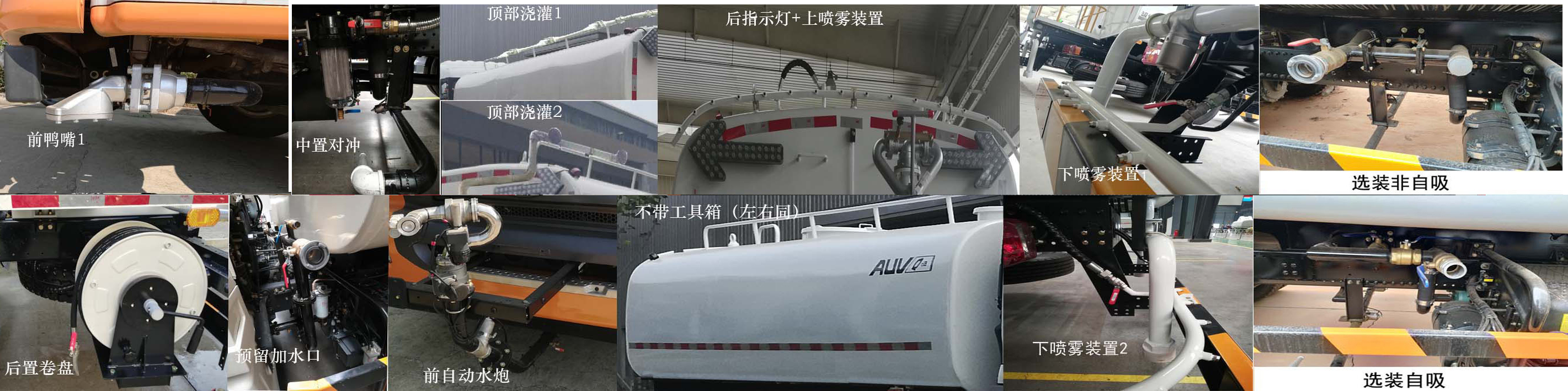 该车装有水罐,水路系统,清洗工作装置,作业平台,控制系统,用于清洗作业.罐体总容积10.5立方米,有效容积10.1立方米,罐体外形尺寸(长轴×短轴×长度)(mm):2300×1270×5000.介质名称:水,介质密度:1000千克/立方米.侧防护和后防护材料均为Q235A,与车辆的连接方式为螺栓连接;后防护装置断面尺寸:150×50mm,后防护离地高度:500mm;ABS型号为CM4XL-4S/4M,生产厂家为广州瑞立科密汽车电子股份有限公司.安装符合规定的具有卫星定位功能的行驶记录仪.随底盘选装新格栅新logo.选装后喷雾装置,选装风炮,选装后指示灯,选装后卷盘,选装中置对冲,选装顶部浇灌装置,选装不带工具箱(左右),选装自吸及非自吸状态,可选装采用直接供电方式的ETC车载装置. |