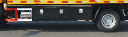 托举质量(kg):2535。选装侧面工具箱。选装后尾板装置,当选装后尾板装置时,整车高度为(mm):2280,整备质量(kg)5090,托举质量(kg):2015。防护材料:Q235A碳钢,连接方式:左右侧面防护采用焊接连接,后部专用装置与后防护相干涉,故后防护豁免。ABS及其控制器型号为:APG3550500A4,生产厂家为:浙江亚太机电股份有限公司。 |
