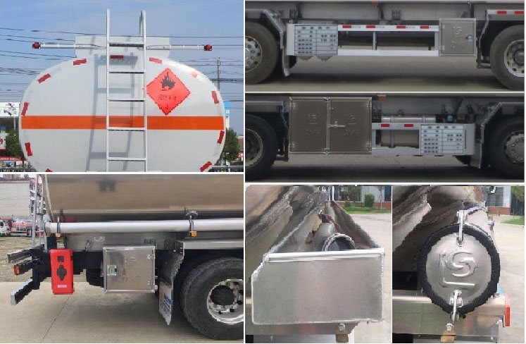 醒狮牌重汽汕德卡小三轴国六23.5方运油车在外观上稳重大气,整车外形尺寸为10300×2550×3330(mm),罐体采用优质碳钢板材一次卷压成型的制造工艺,电脑专控自动成型封头,内外满焊对接,完全做到无缝成型。罐体可分仓,仓内可分室,中间隔板下端有通孔,每仓中间焊有分仓加强波隔板,以减轻车辆行驶时罐体内油料的冲击和提高罐体的刚度。整车还配有油气回收阀,防溢流探杆,流量计,呼吸阀,海底阀灭火器等等安全部件,有效保障运油的安全。
