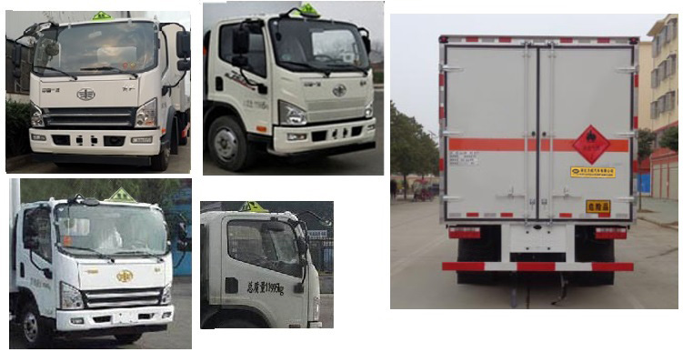 该车为危险品货物运输车,危险物品类项号:2.1,2.2,运输易燃气体时挂2.1类警示牌,运输非易燃无毒气体时挂2.2类警示牌,厢体顶部封闭,不可开启;仅采用底盘3900mm轴距;尾板收起状态水平长度为290mm,尾板质量为:450kg; 侧、后防护装置材料材质:Q235,侧、后防护均采用焊接连接,后防护装置断面尺寸为(mm):50×120,后部防护离地高度:470mm;选装后部不带尾板时,后防护装置材料材质:Q235,后防护采用焊接连接,后防护装置断面尺寸为(mm):50×120,后部防护离地高度:470mm;转向轮安装轮胎防爆应急防护装置,安装子午线轮胎,前轮盘式制动器,排气管前置,安装具有卫星定位功能的行驶记录仪,安装限速装置,限速80km/h;ABS生产厂家/型号:1.广州瑞立科密汽车电子股份有限公司/CM4XL-4S/4M;2.浙江万安科技股份有限公司/VIE ABS-II.;发动机型号及油耗值(L/100km)为:WP3NQ160E61/20.85,CA4DD1-16E6/21.18;该车型选装直接供电ETC车载装置.选装驾驶室,选装侧开门型式及位置;厢体选装开百叶窗,选装瓦楞板样式. |