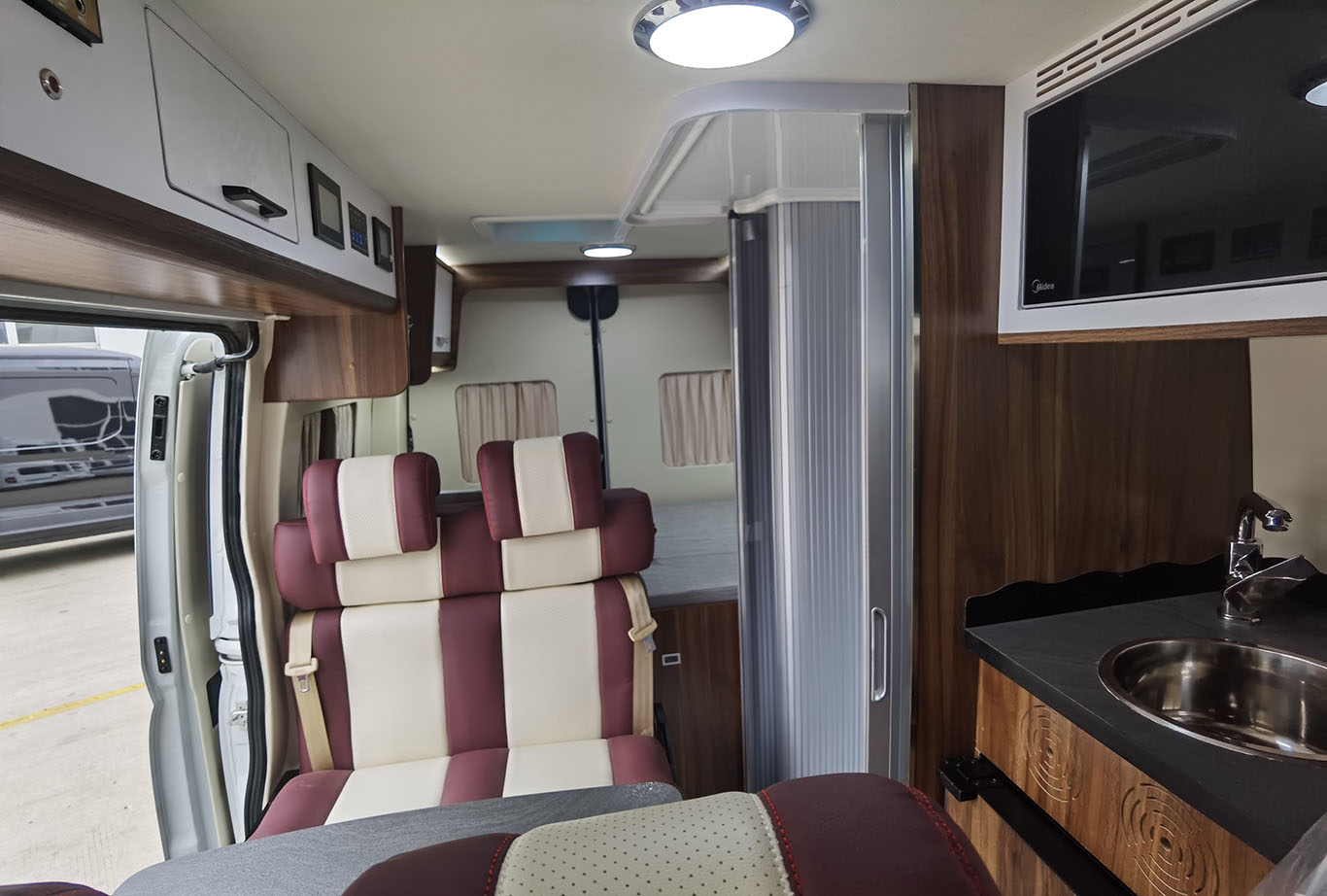 中恒旅牌上汽大通国六B型旅居车在外型简约时尚,整体轮廓硬朗饱满,整车外形尺寸为5250,5035×2000×2650,2345(mm),房厢内部设计科学合理,车窗均配有遮阳帘,这样可以保护车内人员的隐私;车身采用轻量化材料制作而成,在减轻车重的同时也优化了车身轻度。