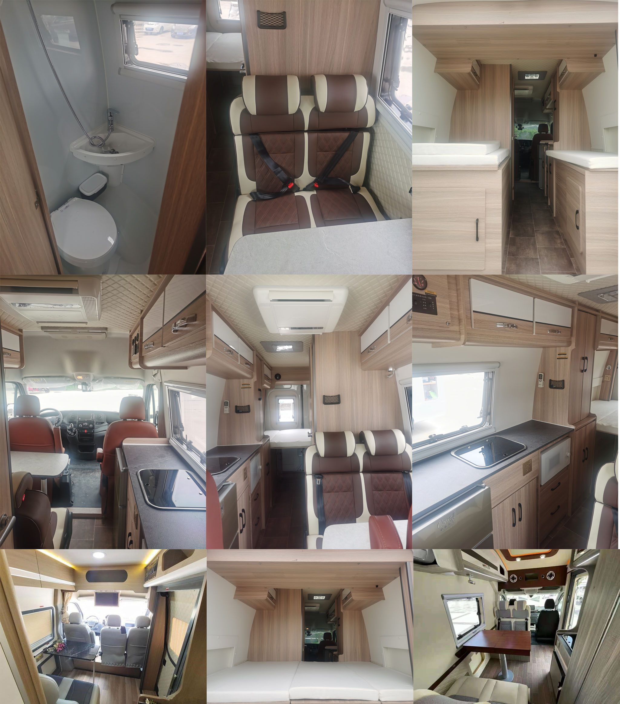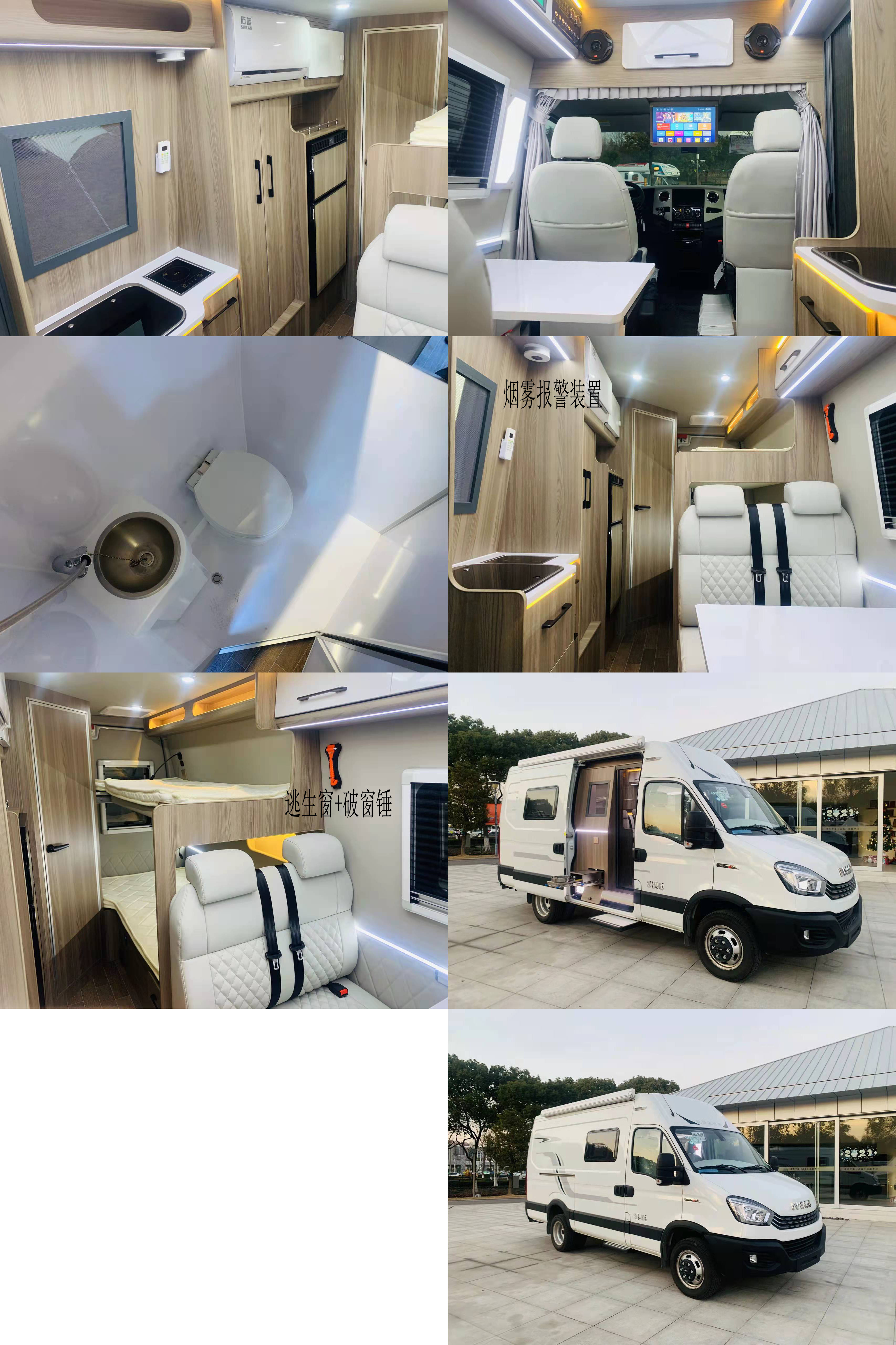 歌睿途牌依维柯国六B型旅居车在外观时尚霸气造型圆润流畅,可有效降低风阻系数,整车外形尺寸为5995×2022×2755,2850,2985,3030(mm),房厢采用玻璃钢复合车身结构及阻燃保温材料,做工精细;房厢内部配置齐全,床,洗手间,厨房,冰箱,,储物仓,暖气设备,灭火器等等。