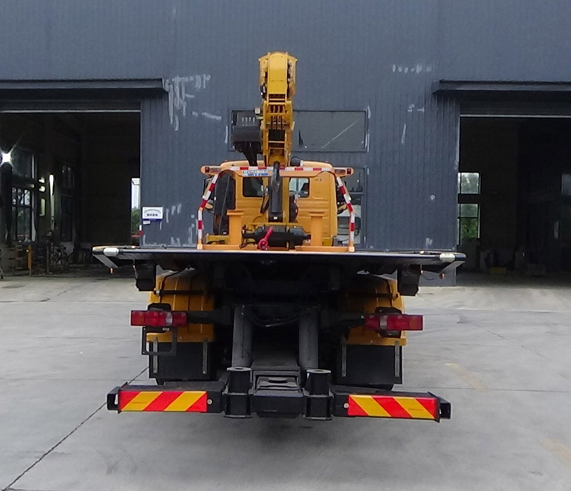 该车主要用于道路故障车辆,城市违章车辆拖运。主要专用装置为托臂、平板、绞盘、钢丝绳、油缸、起重吊机。吊机型号/自重(kg)对应关系为:SQS300-4/4950,对应托举质量为:3320kg(2人),3255kg(3人)。整车长度/轴距/前悬/后悬/(mm)对应关系为:12225/5825+1350/1550/3500。所用材料材质、连接方式以及后部防护装置的主要尺寸参数(断面尺寸和离地高度):防护材料:Q235碳钢,连接方式为焊接连接,后下部防护为专用装置托臂替代:离地高为390mm。随底盘选装限速装置,限速89km/h。ABS系统型号为446 004 6300,生产企业为威伯科汽车控制系统(中国)有限公司。随底盘选装驾驶室,选装昼间行驶灯。选装踏步。选装前面罩。选装踏步和侧翼子板配色。选装A柱配色。选装保险杠外观及配色。 |