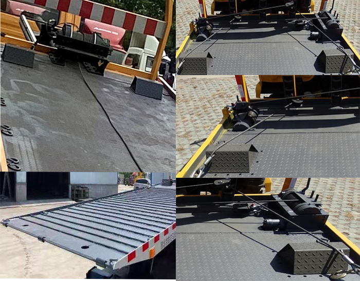 该车主要用于道路故障车辆,城市违章车辆清理.清障车主要专用装置为:液压绞盘、液压油缸、平板结构、液压装置.侧防护横杆结构,侧防护所用材质为Q235,连接方式:螺栓连接.后防护由专用装置代替,离地高度450mm.发动机B6.2NS6B230,F4.5NS6B220,B6.2NS6B210,D6.7NS6B230,F4.5NS6B190.选装限速装置时最高车速89km/h.ABS系统型号/生产企业对应关系:ABS-E/威伯科汽车控制系统(中国)有限公司;ABS/ASR-24V-4S/4M/东科克诺尔商用车制动系统(十堰)有限公司;CM4XL-4S/4M/广州瑞立科密汽车电子股份有限公司;3550D-1010/东科克诺尔商用车制动系统(十堰)有限公司.车长(mm)/轴距(mm)/前悬(mm)/后悬(mm)/后伸(mm)/离去角(°)对应关系:10610/5750/1270/3490/100/8;10360/5750/1270/3340/0/8.5;9860/5150/1270/3340/100/9;9180/4700/1270/3050/160/10;整备质量(Kg)/准乘人数/托举质量(Kg)的对应关系是:11500/2(3)/6370(6305);11100/2(3)/6770(6705);10800/2(3)/7070(7005);选装引起的质量变化在3%以内.选装不同液压绞盘布局.选装折叠式后挡板.选装不同型式平板.随底盘选装驾驶室. |