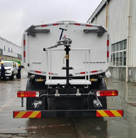 车身喷漆采用白蓝相配,寓意蓝天白云,保卫环境整洁的意思;整车外形尺寸为8050,8450,8650×2470×2930,2900(mm),罐体容量大,车辆额定载质量达到11065,11000(Kg),保证了运输的水容量,改装配置上,加装有60米的耐高压钢丝清洗高压管,方便近距离作业;配上金属喷漆,提高车辆档次,确保罐体无掉漆,延长使用寿命,同时整车造型美观,比例协调。