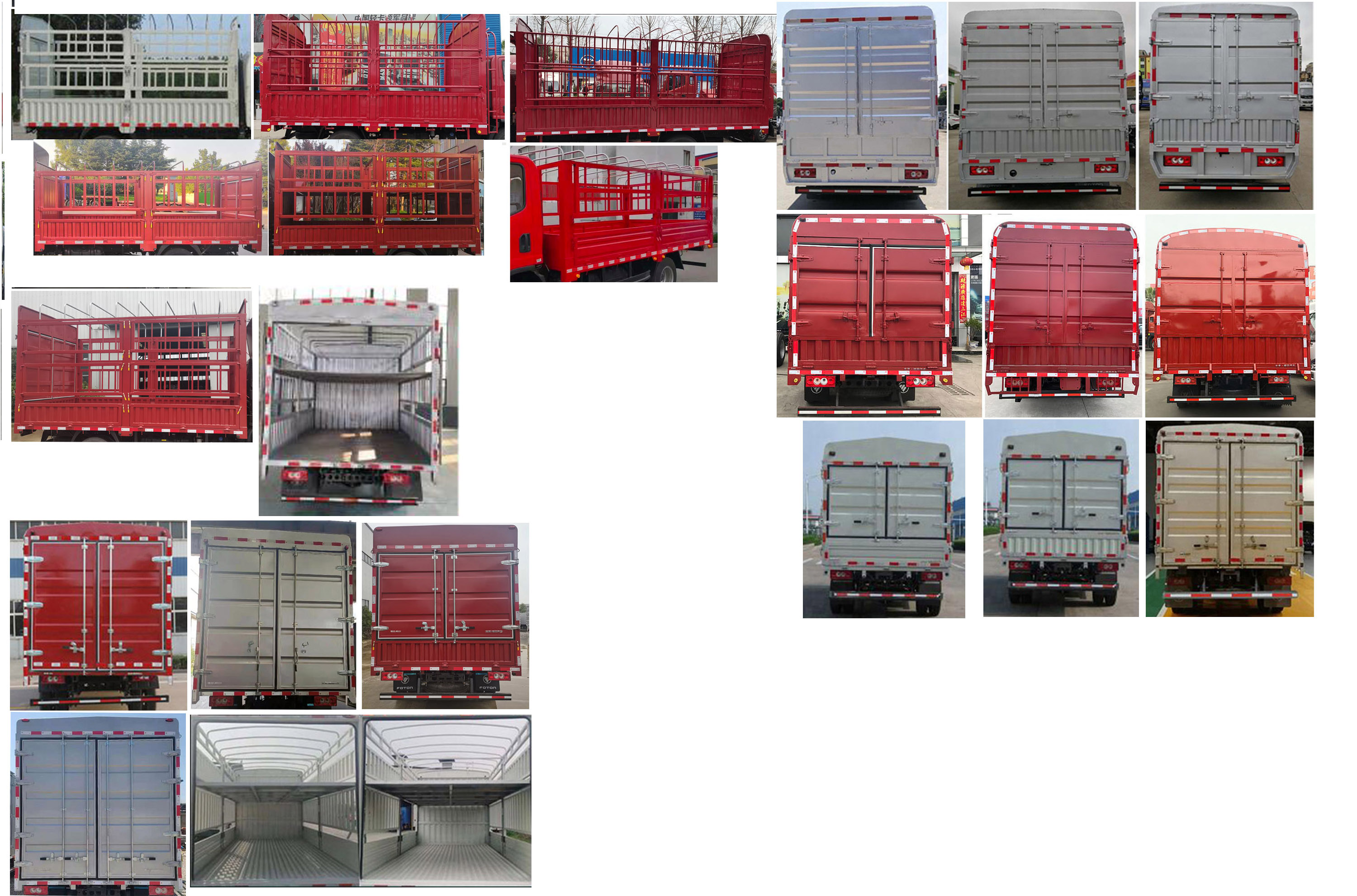 备注 | 1.货箱底板到仓栅顶部高度为1400mm,1490mm,1800mm,1900mm,2100mm;2.选装排半驾驶室,选装前围,选装导流罩,选装三开/五开门货箱风格,选装后部三开门风格,选装横向竖向货箱风格,选装侧梯,选装品式货厢风格,选装不同结构的货厢风格,选装后部货箱风格,选装圆管形仓栅货箱风格,选装储气筒内置,选装铝合金储气筒.3.侧面防护装置材料为冷板B-2.0,后下部防护装置材料为管Q245A,后部防护装置截面尺寸100mm×50mm,均为螺栓连接.后下防护装置离地高度480mm,选装铝合金后防护,后下部防护装置材料为AL6061-T6,后部防护装置截面尺寸为100mm×75mm,为螺栓连接.后下防护装置离地高度480mm;4.ABS系统型号:ABS-E;生产企业:威伯科汽车控制系统(中国)有限公司.ABS-VI.E;生产企业:广州瑞立科密汽车电子股份有限公司.ABS8.8 ECU 24V;东科克诺尔商用车制动系统(十堰)有限公司;5.发动机D25TCIF1,Q23-132E60对应油耗值为11.4,11.4,该车型可选装ETC车载装置,选装仓栅隔板货厢风格,选装后部不同锁杆货厢风格,选装尿素罐位置,选装电瓶位置.单排驾驶室对应LVBV3JBB×××××××××;排半驾驶室对应LVBV3PBB×××××××××;该车型整备质量不包含备胎,灭火器,随车工具.货箱重量为590kg,底板材质为BD700L钢,厚度为1.8mm,侧板材质为冷板HC700/980MS钢,厚度为0.7mm. |