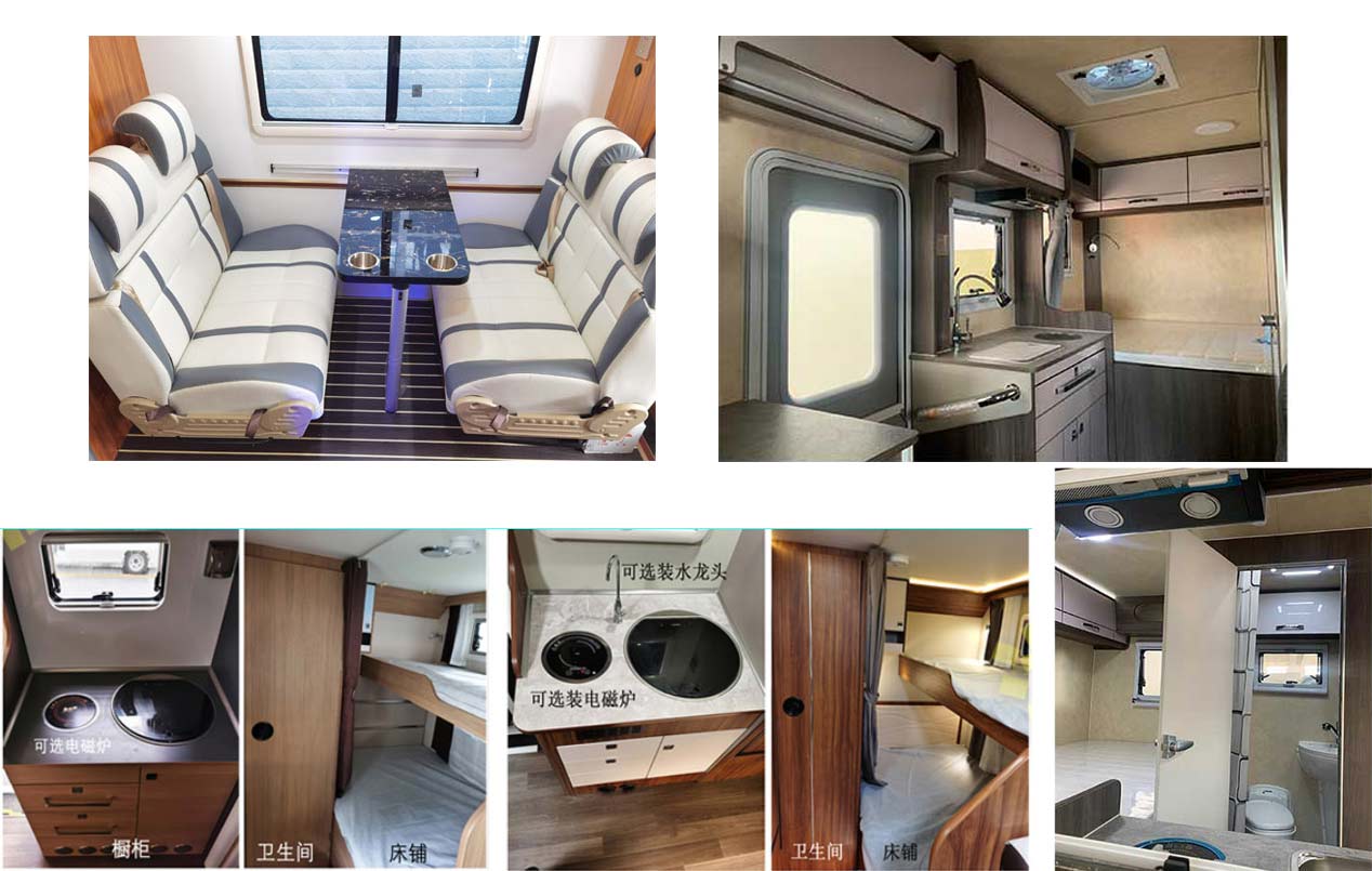 该车主要用于外出旅游居住,方便出行;本车型装备炊具,桌椅,睡具,卫生设施等设施;后部选装无自行车架、无爬梯结构,选装无遮阳棚结构,顶置空调、排风扇、太阳能电板、行李架;选装内部装饰风格及布局,ABS系统控制器型号:BOSCH ABS9、BOSCH ESP9, ABS系统控制器生产企业:BOSCH公司,装F1AE8481D发动机时,发动机最大净功率93KW;装F1CE8481K发动机时,发动机最大净功率123kW;装F1AE8481G发动机时,发动机最大净功率105kW,随底盘选装前雾灯,选装红色格栅和镀铬格栅,选装轮罩时宽度为2022mm,选装铝合金车轮,选装铝合金车轮时后轮距为1558mm,选装自动变速箱,该车可选装ETC装置; |