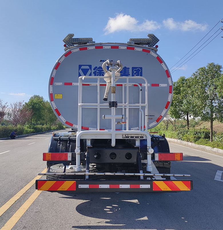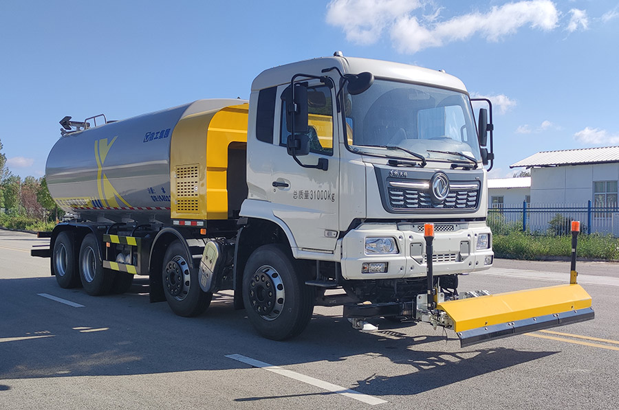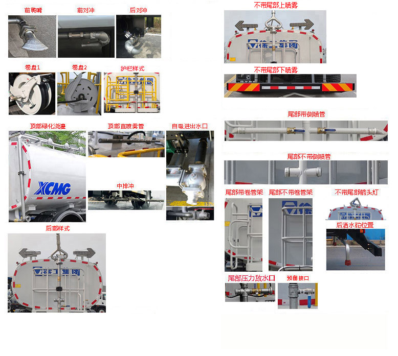 车辆主要装置为水罐、水路及作业装置,主要用于城镇道路清洗清洁作业.随底盘选装驾驶室.罐体总容量19.85立方米,罐体尺寸(长轴×短轴×长度)(mm):2440×1750×5350,介质为水.罐体有效容积为18.9立方米.前伸为1000mm.选装鸭嘴、对冲、卷盘、护栏样式、顶部绿化浇灌、直喷雾管、中对冲、自吸进出水口、后部样式、尾部不带上下喷雾、侧喷管、卷管架、不带尾部箭头灯、洒水砣位置、尾部压力放水口、预留接口,此类选装对尺寸重量的影响忽略不计;侧防护装置材质为Q355,连接方式为螺栓连接,后防护装置材质为Q355,连接方式为螺栓连接,截面为180×60mm,离地高度为450mm.ABS型号/生产厂家:3631010-C2000/东科克诺尔商用车制动系统(十堰)有限公司,ABS 8/东科克诺尔商用车制动系统(十堰)有限公司. |