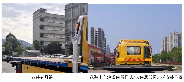 ABS型号:ABS-E,CM4XL- 4S/4M,3550D- 1010;ABS生产企业:威伯科汽车控制系统(中国 )有限公司,广州瑞立科密汽车电子股份有限公司,东科克诺尔商用车制动系统(十堰)有限公司;发动机净功率值:F4.5NS6B220发动机最大 净功率 :159kw,B6.2NS6B230发动机 最大净功率:166kw;选装描述:随底盘选装驾驶室,选装窄灯架,选装上车坡道样式,选装尾部标志板安装位置;该车超限;侧后防护情况:侧、后防护材料均为Q235,侧防护螺栓连接;后防护由专用装置代替,离地高度选445mm;专用功能及装置:该车主要用于托移道路故障车辆,城市违章车辆等工作,专用装置:主要包含副梁总成、平板总成、绞盘钢丝绳总成、托臂总成及清障专用托具等零部件;平板总成用于背载作业;绞盘钢丝绳总成用于背载、施救过程中拖拽作业,托臂、托具总成用于托牵作业;托举质量(kg):7070,7005,6270,6205;其他说明:该车装备具有卫星定位功能的行驶记录仪; |