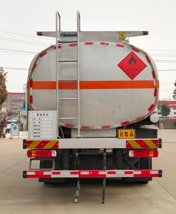随底盘选装驾驶室。该车适用于危险品运输,运送危险货物车辆类型为:FL型, 准运介质最大密度700千克/立方米,罐体总容量25.49立方米,罐体有效容积24.28立方米,罐体外形尺寸(长×长轴×短轴)(mm):8200×2480×1680.侧防护采用Q235,螺栓连接。后防护采用Q235,焊接连接。后防护截面高度尺寸120mm,截面宽度尺寸60mm,下边缘离地高度500mm。仅采用排气管前置,子午胎,限速装置,前盘制动器的底盘;转向轮安装轮胎爆胎应急防护装置,后轴采用空气悬架.EBS系统生产厂家及型号分别为:EBS系统控制器生产企业/型号为威伯科(上海)管理有限公司/EBS3。发动机与油耗值(L/100Km)对应关系为:WP8.350E61/35.68,MC07.34-60/38.13,WP10H400E62/36.4,WP9H350E62/36.39,MC07H.35-60/37.44,MC11.44-60/37.12,MC11.46-61/36.7。安装带有卫星定位功能的行驶记录仪。该车可选装ETC车载装置。采用1950+3800+1400轴距底盘。选装挡泥板式样,罐体上部选装上走道。 |