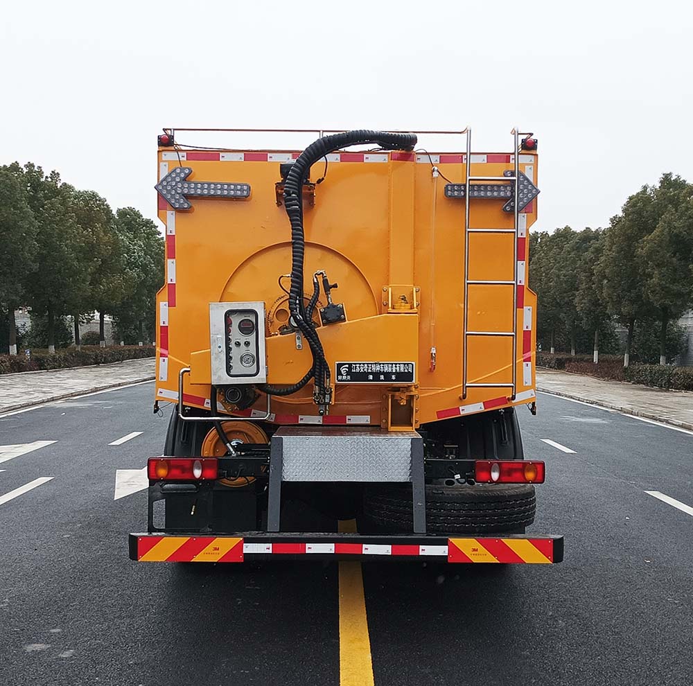 备注 | 该车主要用于清洗路面,管道沉积物等,主要专用装置为清洗管道系统和罐体.罐体总容量:9.85立方米,有效容积:9.39立方米,介质:水,密度:1000千克/立方米;罐体外形尺寸(长/长轴/短轴)(mm):3000×2400×1600;仅选用4500mm轴距;左右侧防护装置材料为铝合金,后防护装置材料为Q235,侧、后防护连接方式均为螺栓连接;后部防护断面尺寸(宽×高)80×140(mm),后部防护离地高度(mm):480.随底盘选装驾驶室;选装侧面安装高压水泵;ABS型号/生产厂家:3631010-C2000/东科克诺尔商用车制动系统(十堰)有限公司,ABS 8/东科克诺尔商用车制动系统(十堰)有限公司,4460046450/威伯科汽车控制系统(中国)有限公司,J ABS/焦作博瑞克控制技术有限公司.随底盘选装限速装置,限速89km/h. |