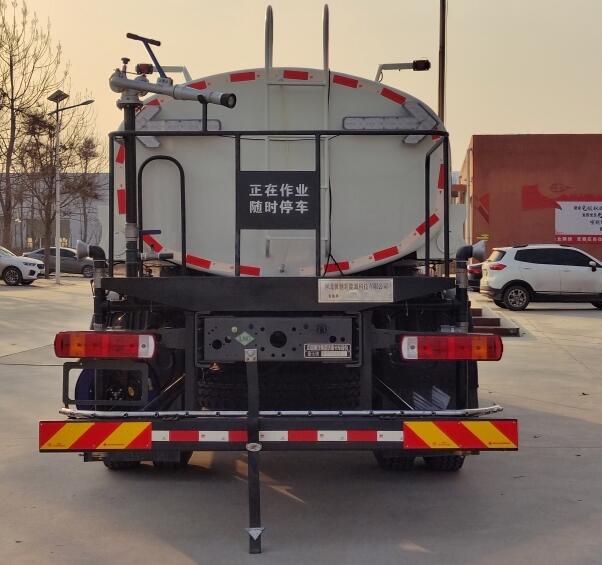 该车装备有罐体、水泵等,用于清洗路面,对路面喷洒水降尘.罐体总容量:8立方米,罐体有效容积:7.6立方米.罐体外形尺寸(长×长轴×短轴)(mm): 4050×2100×1330.侧/后防护材料为Q235B,侧防护焊接连接,后防护焊接连接.后部防护装置断面尺寸160×60(mm),后部防护离地高度:480mm.ABS系统控制器生产企业/型号为威伯科(上海)管理有限公司/4460046300;选装EBS,EBS系统控制器生产企业/型号为威伯科(上海)管理有限公司/EBS3.仅选用5000mm轴距.安装限速装置,限速:89km/h. |