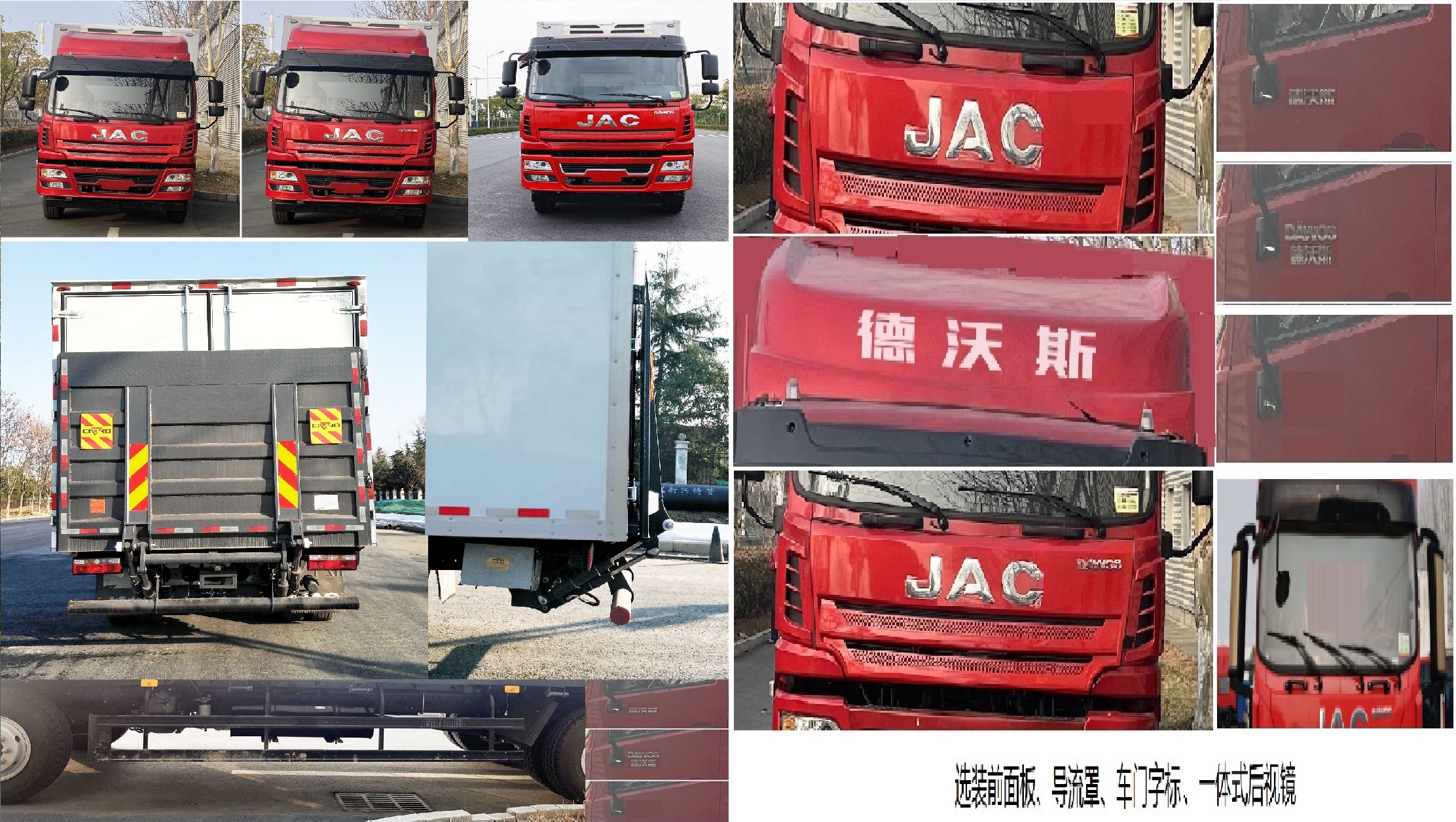 1.车厢顶部不可开启,选装不同样式的后视镜;2.选装侧面不开门货厢、单开门和双开门货厢,选装不同厂家但制冷量相同的冷藏机组;3.发动机B4.0NS6B195,D45TCIF1,B4.5NS6B220的油耗申报值(L/100km)为26.8,26.8,26.9;4.侧面部防护装置材料为Q235,连接方式为螺栓连接,后防护装置材料为QSTE650,连接方式为螺栓连接,后防护断面尺寸长×宽为:150mm×60mm,离地高度为470mm,选装不同材质和截面的后防护,选装的后防护装置材料为QSTE650,连接方式为螺栓连接,后防护断面尺寸长×宽为:120mm×70mm,离地高度为450mm;5.ABS控制器型号/生产企业:CM4XL-4S/4M/广州瑞立科密汽车电子股份有限公司.6.随底盘选装平顶、半高顶、高顶驾驶室,选装不带导流罩,随底盘选装导流罩及导流罩带字标;7.选装限速装置时最高车速为89km/h;8.安装带卫星定位功能的行驶记录仪;9.选装改前围面板,进气格栅,前保险杠,组合灯具的驾驶室;该车型可选装ETC车载装置;10.可选装液压尾板,尾板收起状态的水平长度为300mm,当选装液压尾板时后部防护装置材料为510L,安装在尾板支架上,螺栓连接,后防护与尾板联动,后部防护装置断面尺寸(圆形):Φ123mm,离地高度为500mm,选装的液压尾板质量550KG;选装不同样式的字标;根据不同的设计状态,尿素罐、储气筒、电瓶等底盘件的布置位置有所不同;随底盘选装不同材质的油箱 |