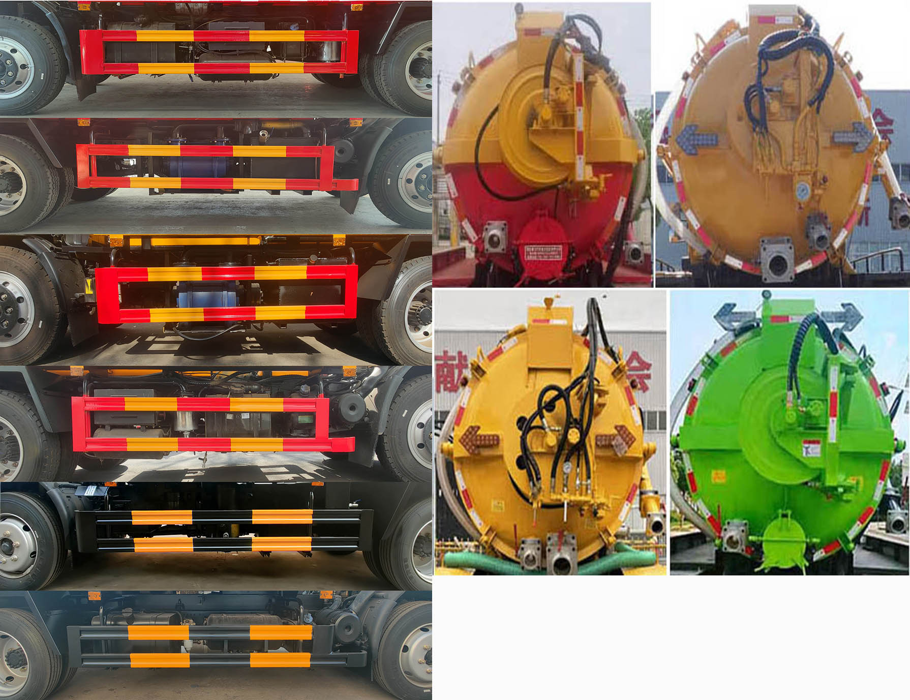该车专用装置主要为污水罐和清水罐,用于下水道排污及疏通,罐体带有举升功能;清水罐和污水罐为两个独立罐体,清洗功能时用清水罐,吸污功能时用污水罐,清洗和吸污两种功能不能同时使用,两个罐体不能同时满载;罐体尺寸(总长×直径)(mm):4900×1700,其中罐体后段3250mm为污水罐,介质为液态污物,密度(千克/立方米)为800,污水罐罐体总容量为7.04立方米,有效容积为6.7立方米;罐体前段1650mm为清水罐,介质为清水,密度(千克/立方米)为1000,清水罐罐体总容量为3.5立方米,有效容积为3.3立方米;侧、后防护均采用Q235材质,连接方式均为焊接连接,后防护断面尺寸(mm)为120×50,离地高度(mm):480;采用轴距3800mm底盘;ABS型号/厂家:ABS/ASR-24V-4S/4M/襄阳东风隆诚机械有限责任公司;随底盘选装驾驶室,选装车身两侧不同外观及后部卸料口外观. |