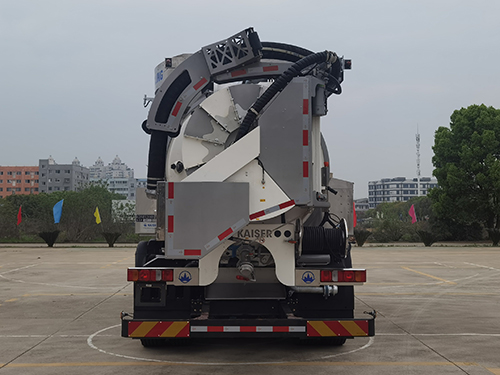 该车主要专用装置罐体、高压水泵、真空泵、管道系统等,用于下水管道的冲洗疏通及管道内污水的吸除;污泥罐罐体外形尺寸(直径×总长)(单位:毫米):1700×3765,污泥罐总容量为7.9立方米,有效容积为7.57立方米,介质为液态污物,密度:950千克/立方米;清水罐罐体外形尺寸(直径×总长)(单位:毫米):1700×1565,清水罐总容量为3.01立方米,有效容积为2.88立方米,介质为水,密度是1000千克/立方米;清水罐和污泥罐不能同时满载;侧防护所用材料材质均为为不锈钢,侧防护与副车架螺栓连接,后防护所用材料材质为Q235A,后防护与车辆螺栓连接,后防护端面为槽型,端面尺寸(mm)为160×65,离地高度为450mm;仅采用轴距(mm)为3800+1400;装备ABS,ABS型号/生产厂家:4460046450/采埃孚商用车系统(青岛)有限公司;选装限速装置,限速89km/h、80km/h;该车型可选装直接供电式ETC车载装置;随底盘选装驾驶室样式。 |