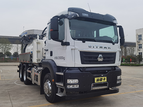 皇冠牌重汽汕德卡后双桥国六10.91方清洗吸污车的外观简单大气,外形尺寸为9172×2550,2530,2500×3520,3490(mm),额定上户吨位为7265,7200(kg),总质量为25000(kg),整车上装罐体分为污水罐和清水罐两部分,污水罐在中间,清水罐在污水罐的两侧,罐体材料全部采用优质武钢碳钢板制作而成,封头一次压铸成型;整车配备进口高压清洗泵和优质国产吸污泵,吸力大,吸程远,可以将水道内的淤积物轻而易举的搞定。
