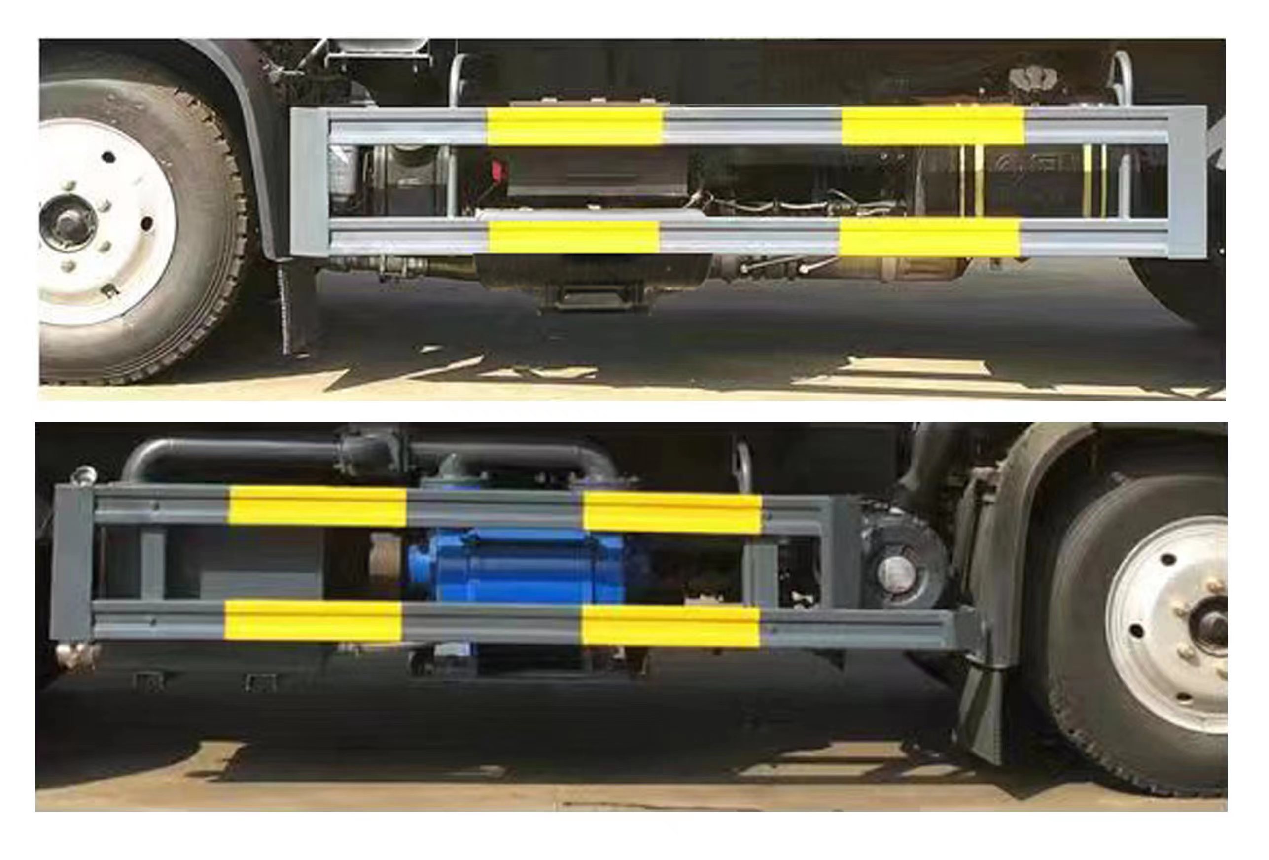 扩展水泵安装位置;随底盘选装驾驶室;该车专用装置为清水罐和吸污罐,主要用于城市管网的清洗和疏通,罐体带有举升功能;罐体外形尺寸(直段长×直径)(mm):4500×1600,边挂清水罐尺寸(长×高×宽)(mm):4100×1080×580;污水罐总容量为7.69立方米,污水罐有效容积为7.33立方米,清水罐总容量为4.5立方米,清水罐有效容积为4.3立方米;清水罐和污水罐为独立罐体,清洗功能时用清水罐,吸污功能时用污水罐,清洗吸污两种功能不同时使用,污水罐和清水罐不可同时满载;侧防护材质Q235,焊接连接;后防护装置材料Q235,连接方式焊接连接,后部防护截面尺寸(高×宽)(mm):120×60,后部防护离地高度(mm):450;ABS型号及生产厂家为:3631010-C2000/东科克诺尔商用车制动系统(十堰)有限公司,J ABS/焦作博瑞克控制技术有限公司. |