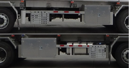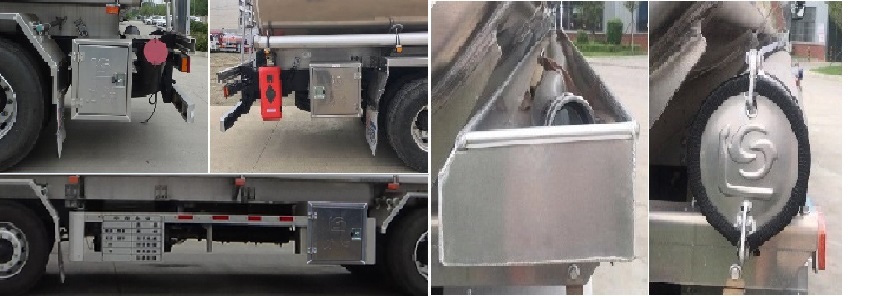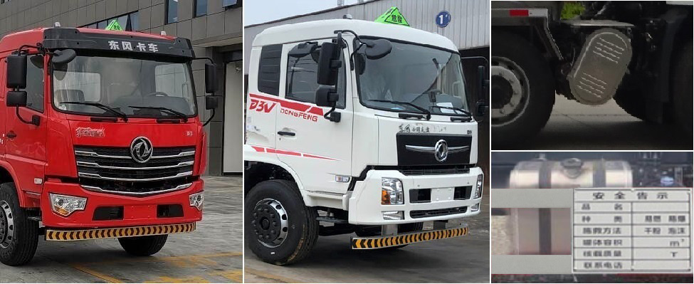 罐体总容量:25立方米,罐体有效容积:23.8立方米,危险货物运输车辆的类型为FL型,介质最大密度710千克/立方米;罐体尺寸(长×长轴×短轴)(mm)为:7500×2500×1700;仅采用1995+5000mm轴距;侧防护装置材质:铝合金6061,后防护装置材料材质:Q235B,侧、后防护均采用螺栓连接,后防护装置断面尺寸为(mm):80×150,后部防护离地高度:420mm;随底盘选装驾驶室及油箱和后处理器外观,选装尾部带工具箱,选装罐体两侧出口箱及管箱样式;安装具有卫星定位功能的行驶记录仪,排气管前置,安装前盘制动器和限速装置,限速80km/h,仅采用底盘子午线轮胎;安装EBS,EBS型号/厂家:EBS5/东科克诺尔商用车制动系统(十堰)有限公司;发动机与油耗申报值(L/100km)对应关系为B6.2NS6B260(33.44),YCS06245-60A(31.32);该车后轴采用空气悬架;转向轮安装爆胎应急防护装置;选装直接供电式ETC车载装置. |
