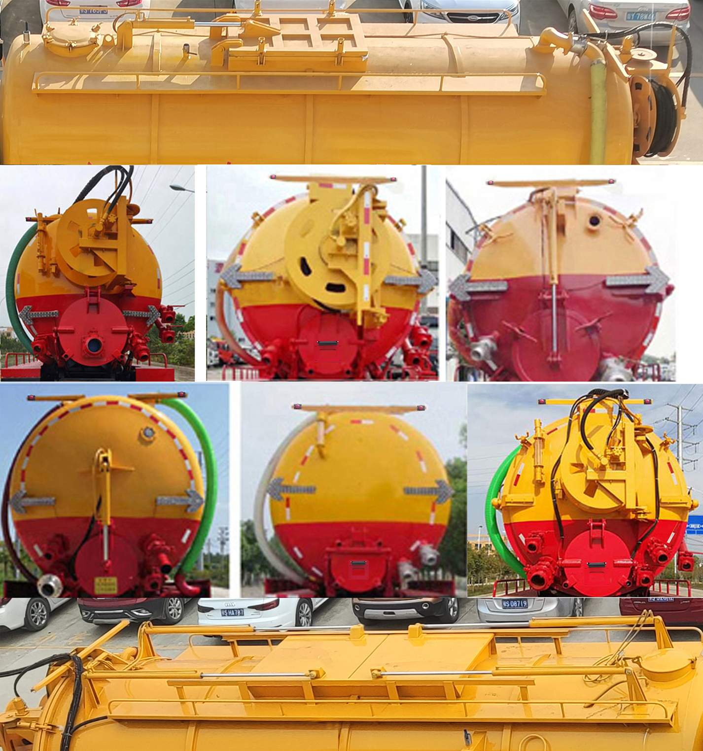 1.ABS系统控制器生产企业/型号为威伯科(上海)管理有限公司/4460046300;2.随底盘选装驾驶室,选装罐体顶部结构样式,选装后盖结构样式,选装EBS,EBS系统控制器生产企业/型号为威伯科(上海)管理有限公司/EBS3,选装限速装置,最高车速(km/h)为89,仅用4300+1350,4600+1350mm轴距;3.侧、后防护材料为Q235,侧防护螺栓连接,后防护焊接连接,截面尺寸320×60mm,下边缘离地高470mm;3.罐体尺寸(长(含封头)×直径)(mm):6500×2100,罐体前部为清水罐,罐体后部为污水罐,污水罐(长(含封头)×直径)(mm):3650×2150,污水罐总容量:10.24立方米,污水罐有效容积:9.74立方米;清水罐(长(含封头)×直径)(mm):2850×2150,清水罐总容量:8.19立方米,清水罐有效容积:7.79立方米;4.专用功能及装置:该车专用装置主要为污水罐,清水罐,清洗和吸污装置,用于下水道排污及疏通,清水罐和污水罐为两个独立罐体,清洗功能时用清水罐,吸污功能时用污水罐,清水罐和污水罐不能同时满载,罐体具有举升功能,该车通过真空泵实现自排水功能;5.整车长/轴距/前后悬对应关系为(mm):9850/4600+1350/1430/2470,9850/4600+1350/1500/2400,10100/4600+1350/1430/2720,10100/4600+1350/1500/2650,9850/4300+1350/1430/2770,9850/4300+1350/1500/2700,10100/4300+1350/1430/3020,10100/4300+1350/1500/2950. |