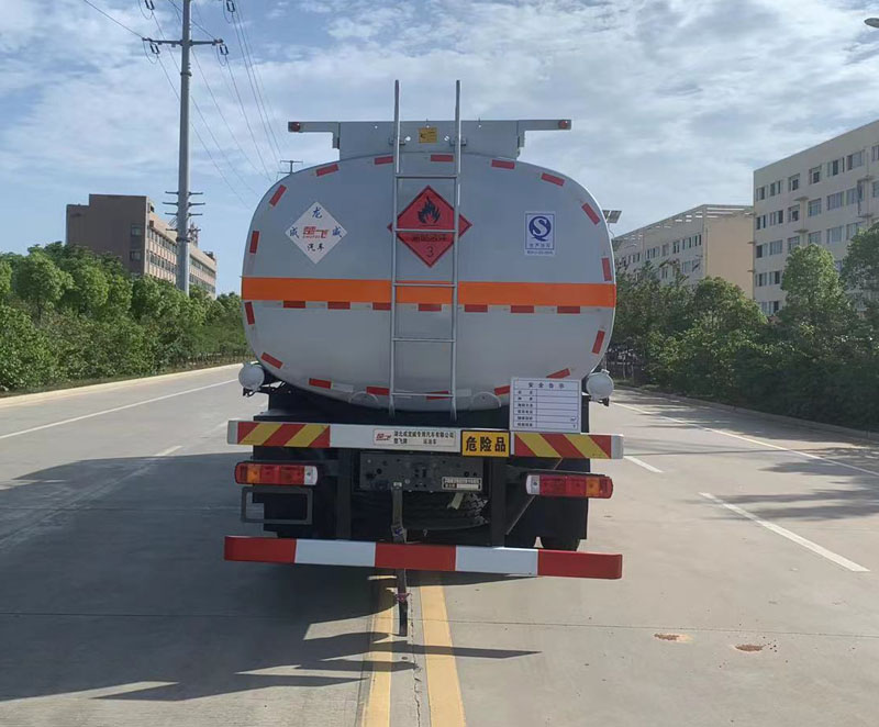 该车适用于危险品运输,车辆类型为FL型;罐体总容量27.2立方米(包含气相空间),罐体有效容积25.9立方米,准运介质最大密度(千克/立方米)为700;罐体外形尺寸(长×宽×高)(mm)为:7800×2480×1750;前悬(mm)/轴距(mm)/后悬(mm)的对应关系为:1430/1800+3775+1400/2495,1500/1950+3800+1400/2250;侧、后防护材料为Q235,连接方式为螺栓连接,后防护截面尺寸140×50mm,离地高度420mm;EBS系统控制器生产企业/型号为威伯科(上海)管理有限公司/EBS3;仅采用子午线轮胎,安装限速装置,限速80km/h,安装具有卫星定位功能的行驶记录仪,该车后轴采用空气悬架,前轴盘式制动,转向轮安装爆胎应急防护装置,排气管前置;发动机对应油耗值(L/100km)分别为MC07H.35-60(37.44),WP9H350E62(36.39);选装直接供电式ETC车载装置;随底盘选装驾驶室,选装前部不带爬梯样式及罐体顶部带走道样式. |