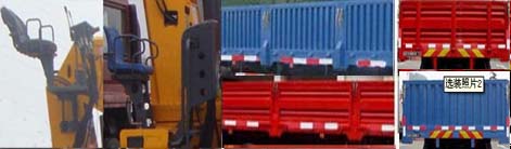 随底盘选装驾驶室,选装高空座椅,选装栏板结构,选配直臂式起重机型号、最大起升载荷及重量分别为(Kg) :SQS350 :14000,6300;SQS300:12000,5430;选配折叠臂起重机型号、最大起升载荷及重量分别为(Kg) :SQZ350,14000,4780,SQZ300,12000,4470.防护材料:Q235,连接方式:螺栓连接,后防护断面尺寸:124×78mm,离地高度530mm.ABS型号:CM4XL-4S/4M;生产企业:广州科密汽车电子控制技术股份有限公司.已安装具有卫星定位功能的行驶记录仪.整备质量与起重机型号一一对应,发动机WP10.350E53、WP10.310E53、SC9DF280Q5、SC9DF300Q5和SC9DF340Q5对应油耗申报值均为40L/100km.起重机SQS350对应整车高度3850,起重机SQS300,SQZ3500,SQZ300对应整车高度3670。 |
