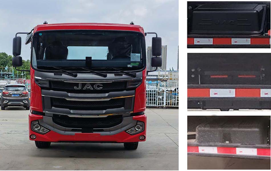 1.侧面及后下部防护装置连接方式为螺栓连接,侧防护材料材质为铝合金5083,后下防护材料材质为:Q235B,后防护离地高度为420mm,断面尺寸长×宽为:140mm×50mm.2.ABS控制器型号/生产企业:CM4XL-4S/4M/广州瑞立科密汽车电子股份有限公司,ABS-E 4S/4M/采埃孚商用车系统(青岛)有限公司.3.发动机YCK08330-60的油耗申报值(L/100km)为23.5.4.该车可拖拽挂车,准拖挂总质量(kg)可为18000,17480,17000,16000,15700,15000,10000;中置轴挂车牵引杆深入量(mm)1940,1900,1870,1860,1800,1750,1700,1680,中置轴牵引杆连接器最大垂直静载荷1000kg.后下部防护装置在连接中置轴车辆运输挂车的时候可拆除.5.该车型可选装ETC车载装置.安装限速装置,限速89km/h.6.选装货箱.选装上层的平台外观.选装上层立柱外观.选装上层护栏结构外观.选装单侧、双侧液压拖带.选装上下层平台空间处有防护网或无防护网状态.选装蓄电池.选装蓄电池盖板.选装后视镜. |