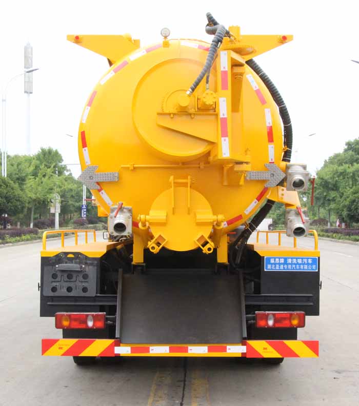 该车用于下水道排污及疏通,专用装置:罐体、吸污泵、清洗冲刷总成.该车辆具有举升功能.罐体外形尺寸(罐体总长×直径)(mm):4900×1750(前面1600mm为清水罐,后部3300mm为污水罐);污水罐总容量:7.04立方米,污水罐有效容积:6.7立方米,介质:液态污物,密度800千克/立方米;清水罐总容量:3.6 立方米,有效容积:3.6 立方米,介质:水,密度1000千克/立方米;清水罐和污水罐为独立罐体,清洗功能时用清水罐,吸污功能时用污水罐,污水罐和清水罐不可同时满载,两罐不可同时使用.ABS型号及生产厂家为:3631010-C2000/东科克诺尔商用车制动系统(十堰)有限公司,J ABS/焦作博瑞克控制技术有限公司;侧、后防护材料均为:Q235碳钢,侧防护采用螺栓连接,后防护采用焊接连接,后部防护截面尺寸(mm):120×50,后部防护离地高度(mm):450.随底盘选装驾驶室新风格装饰件,随底盘选装油箱,尿素罐,电瓶框布置位置.选装侧面样式,选装后部出口样式. |