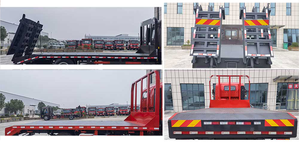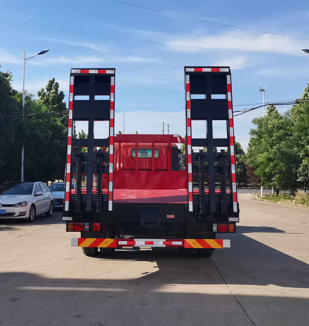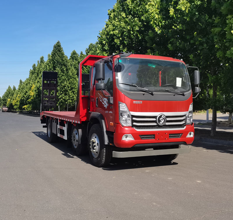 王牌牌小三轴24吨平板运输车的底盘方面,此车采用型号为CDW1244K36FEFA的载货汽车底盘底盘,底盘轴距为1800+3600,1800+2500,1800+3000,1800+3200(mm),轮胎规格为10.00R20 18PR,11.00R20 18PR,295/80R22.5 18PR,使用WP4.6NQ220E61A;WP4.6NQ220E62型号的发动机,排放符合国家环保要求,排放依据标准为GB17691-2018国Ⅵ,具有起步快,爬坡快,陷入坏路面易驶出,经济节油等特点。