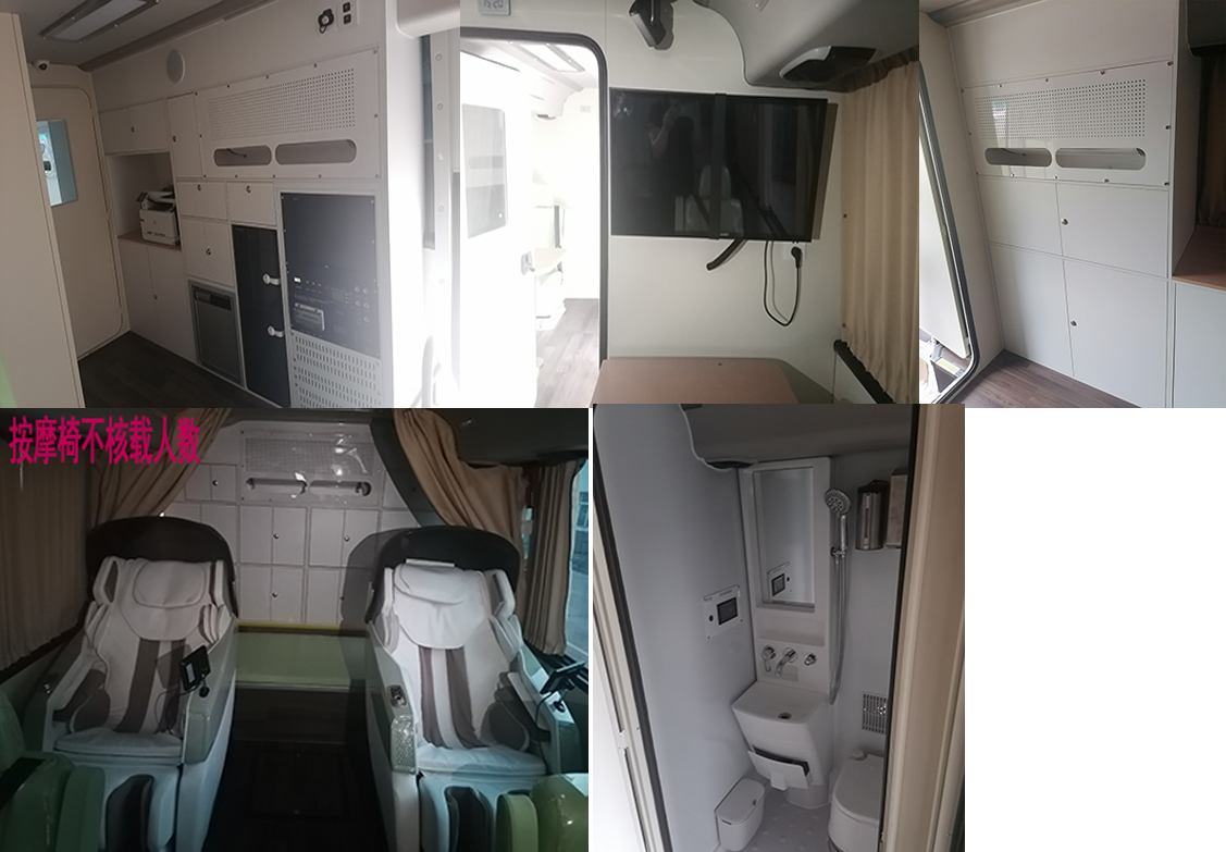 1.配备空调、冰箱、打印机、发电机等专用装置,该车用于心理咨询流动服务作业,长条座椅为休息座椅、按摩座椅、后向座椅为心理咨询者座椅均不核载人数;2.该车安装ABS系统控制器的型号/生产企业:ABS-E 4S/4M /采埃孚商用车系统(青岛)有限公司;VIE ABS-II/浙江万安科技股份有限公司;3.该车安装具有卫星定位功能的行驶记录仪;4.发动机最大净功率为239kW;5.该车型可选装ETC车载装置. |