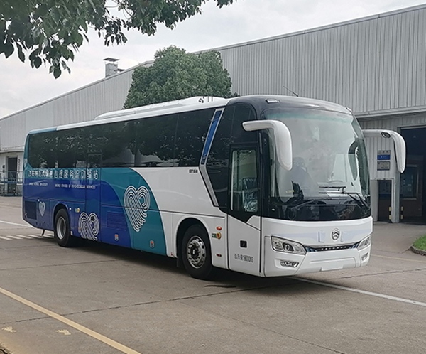红都牌金旅国六黄牌流动服务车在外观时尚霸气造型圆润流畅,可有效降低风阻系数,整车外形尺寸为12000×2550×3600(mm),厢体采用玻璃钢复合车身结构及阻燃保温材料,做工精细;房厢内部配置齐全。
