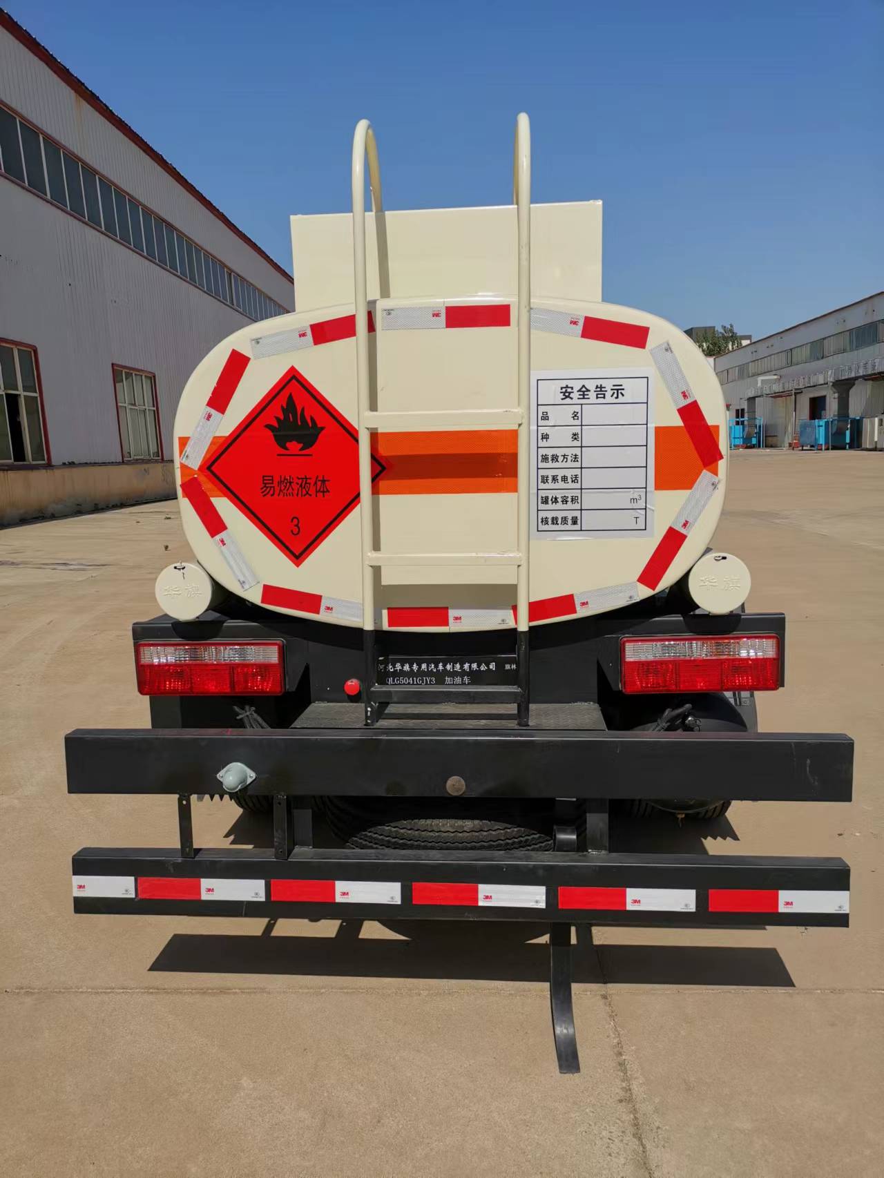 旗林牌QLG5041GJY3型加油车加油车外形简单大气,车身曲线流畅,行驶风阻小,外观尺寸为5300×2000×2220(mm),整车上户吨位为1435(kg),总质量为4495(kg)。整车的罐体采用武钢优质不锈钢材质制作,采用大型卷板机一次成型,强度更高,更安全耐用,随车配置有下装油系统、海底阀、欧标罐口、防溢阀等等设备,安全可靠。车载式电脑加油机使用国内知名品牌,可实现计量计金额加油。
