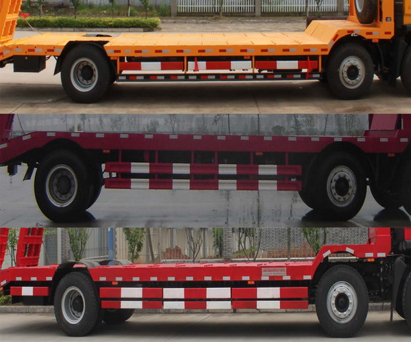 福德牌LT5251TPBABC0型平板运输车在外观上稳重大气,整车外形尺寸为10500,11500,12000×2550×2900,3200,3750(mm),罐体采用优质碳钢板材一次卷压成型的制造工艺,电脑专控自动成型封头,内外满焊对接,完全做到无缝成型。罐体可分仓,仓内可分室,中间隔板下端有通孔,每仓中间焊有分仓加强波隔板,以减轻车辆行驶时罐体内油料的冲击和提高罐体的刚度。整车还配有油气回收阀,防溢流探杆,流量计,呼吸阀,海底阀灭火器等等安全部件,有效保障运油的安全。
