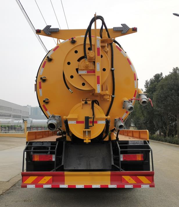 浩天星运牌东风华神T5后双桥国六17.21方清洗吸污车的外观时尚美观,设计科学,外形尺寸为10150×2550×3650,3720(mm),额定上户吨位为7655,7720(kg),总质量为25000(kg),整车上装罐体采用优质钢板一次冲压成型,密封性好,吸污罐体可举升,后盖可以液压打开,排污更彻底,采用进口的高压清洗泵,疏通管道更方便,更彻底,视污窗,洗手装置,高压清洗管,吸污管等配置齐全。