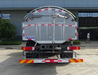 该车专用装置有:高压水泵,罐体,前喷等装置,用于清洗作业.介质:水,罐体总容量:8.91立方米,罐体有效容积:8.49立方米,罐体外形尺寸(长×长轴×短轴)(mm):4050×2260×1450.左右侧面防护材料:Q235A碳钢,连接方式:左右侧面采用螺栓连接,后下部防护装置材料:Q235A碳钢,采用螺栓连接,后部防护断面尺寸(mm):120×60,后部防护离地高度(mm):470.整车长/轴距/前伸(mm)对应关系为:9900/4700/1200,9700/4700/1000,9600/4700/900,8700/4700/0,9700/4500/1200,9500/4500/1000,9400/4500/900,8500/4500/0.ABS系统控制器生产企业/型号为威伯科(上海)管理有限公司/4460046300.随底盘选装限速装置,最高车速(km/h)为80或89.随底盘选装驾驶室.选装前置鸭嘴,前置对冲样式,选装不同前部装置. |