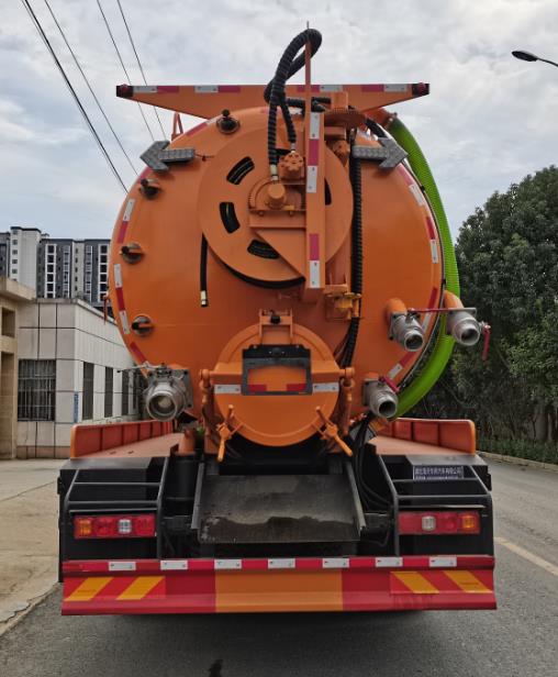 ABS型号:ZQFB-V;ABS生产企业:西安正昌电子股份有限公司;随底盘选装驾驶室。侧防护材料Q235,螺栓连接;后防护材料Q235,焊接连接;后防护断面尺寸50×280mm,下边缘离地高500mm;罐体尺寸含封头(长×直径)(mm):6440×2100,罐体前部为清水罐,罐体后部为污水罐,污水罐含封头(长×直径)(mm):3620×2100,污水罐总容量:10.23立方米,有效容积:9.75立方米;清水罐含封头(长×直径)(mm):2820×2100,清水罐总容量:8.19立方米,有效容积:7.8立方米;清水罐和吸污罐为两个独立罐体,清洗功能时用水罐,吸污功能时用吸污罐,污水罐和清水罐不可同时装载;该车专用装置主要为污水罐和清水罐,用于下水道排污及疏通。罐体可举升自卸.整车长/轴距/后悬对应关系:9800/4375+1400/2500,10050/4375+1400/2750,9800/4575+1400/2300,10050/4575+1400/2550.选装后盖锁紧装置及卷盘样式。 |