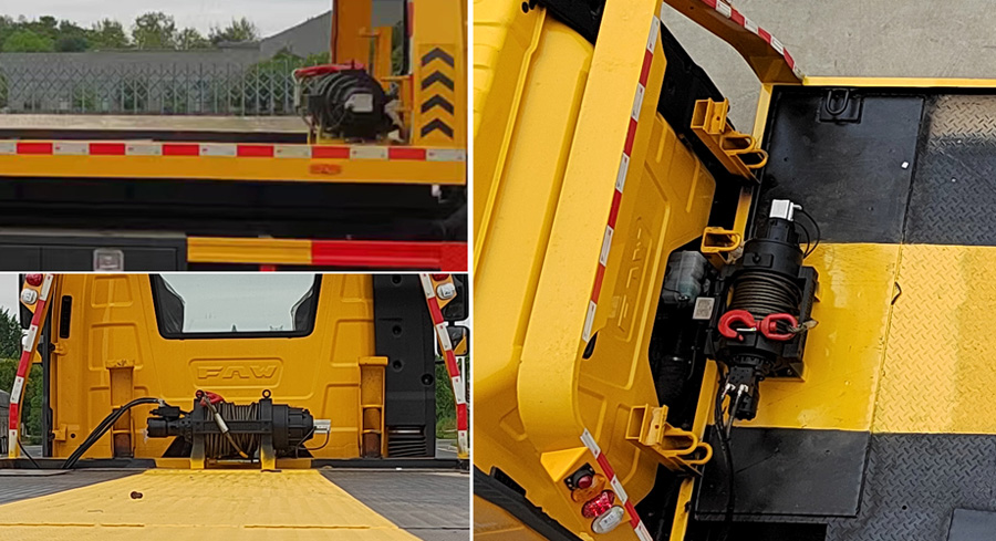 力海通牌解放单桥国六一拖二黄牌清障车在捆绑运输车的过程中可以可靠的把故障车辆固定住,从而有效避免二次伤害出现的可能性。