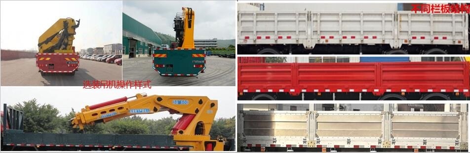 1.上装折臂式起重机型号,起重机质量,最大起重载荷,整备质量,额定载质量分别为:(SQ720、SPK61502、SQZ800)/9100kg/8800kg/24500kg/6370kg(2人),6305kg(3人);(SQ600、SPK5002、SQZ600)/7100kg/7900kg/22500kg/8370kg(2人),8305kg(3人);2.仅采用的发动机WP10.336E53,WP12.375E50的油耗申报值(L/100km)分别为41.1,42.5,最大净功率(kw)分别为:242,271;3.侧防护装置所用材料为铝合金,与车架螺栓连接,后部防护为裙板结构,可豁免,后部装置离地高度为500mm;4.选装不同的货箱栏板结构,吊机操作样式,随底盘选装驾驶室;5.装有ABS,ABS型号:CM4XL-4S/4K(4S/4M),ZQFB-V,VIE ABS-Ⅱ,ABS生产企业:广州市科密汽车制动技术开发有限公司, 西安正昌电子有限责任公司, 浙江万安科技股份有限公司;6.安装具有卫星定位功能的行车记录仪;7.货箱尺寸及其他配置变化引起的质量参数变化在3%以内,可忽略不计;8.尺寸对应关系(总长=前悬+轴距+后悬):12000=1525+2100+4575+1400+2400,12000=1525+1800+5175+1400+2100,12000=1525+1800+4575+1400+2700. |