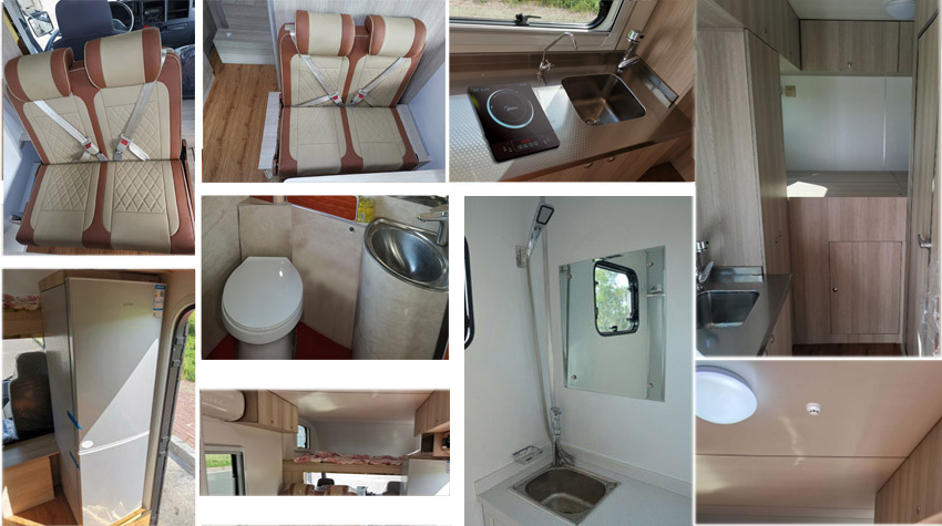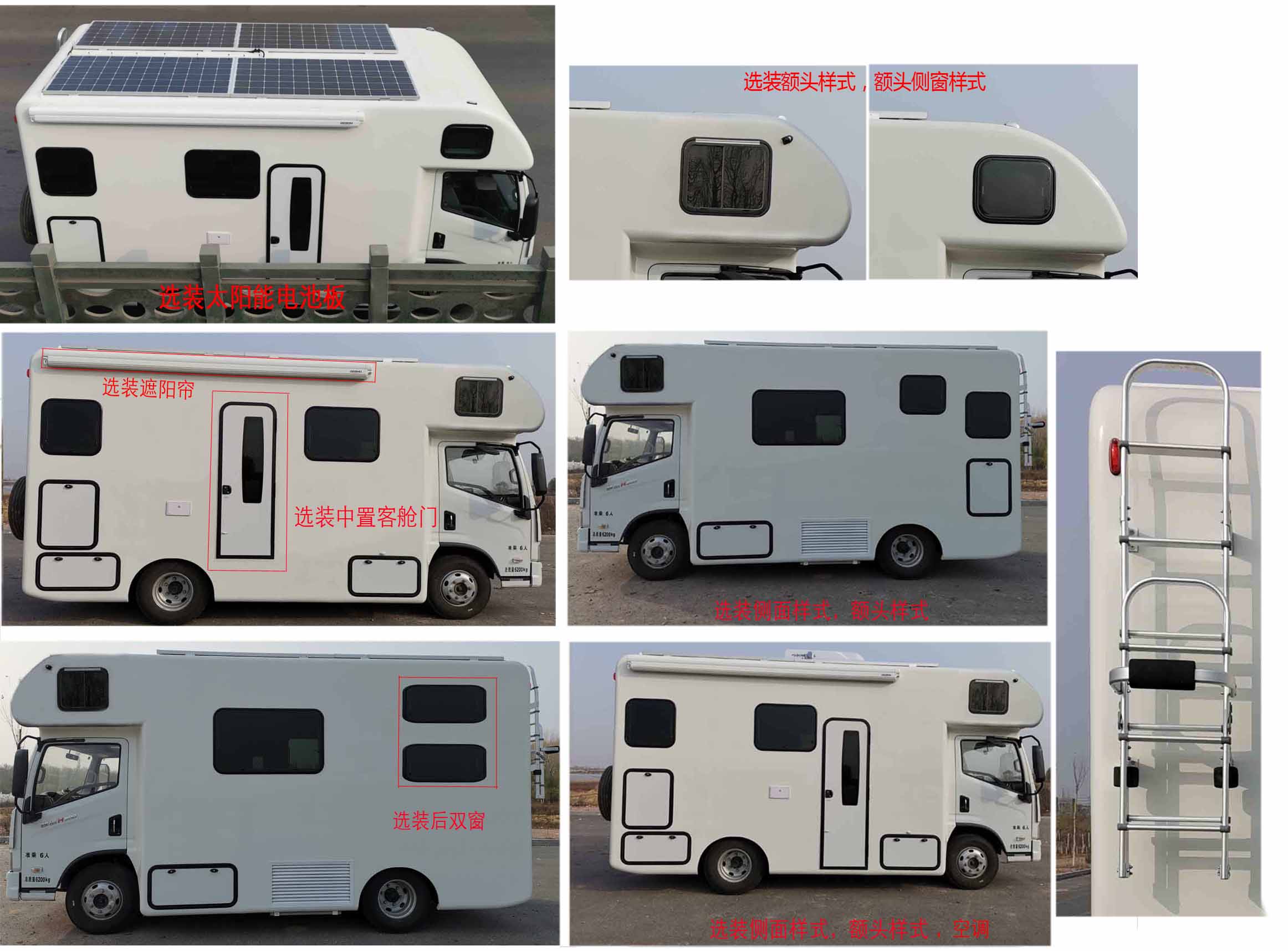 1.该车配备有沙发椅,衣柜,炊具,厨具,卧具,卫生间洗浴设施等旅居用途的专用装置,用于旅行宿营。2.车身主体宽2440mm,车宽2540mm时为选装遮阳蓬的宽度。车身主体高3150mm,选装太阳能电池板高度为3200mm,选装顶置空调的高度为3480mm。3.选装后部爬梯,选装车体左右窗户不同安装位置及数量,选装厢体客舱门中置,选装额头样式及额头侧窗样式,选装后双窗结构。4.侧防护和后防护为裙边结构,后部裙边最下端离地高440mm。ABS型号:VIE ABS-Ⅱ,生产企业:浙江万安科技股份有限公司,型号:CM4XL-4S/4M,生产企业:广州瑞立科密汽车电子股份有限公司。5.仅选用SC28R150Q6发动机和3308mm轴距底盘改装。6.该车配置直接供电式ETC车载装置。 |
