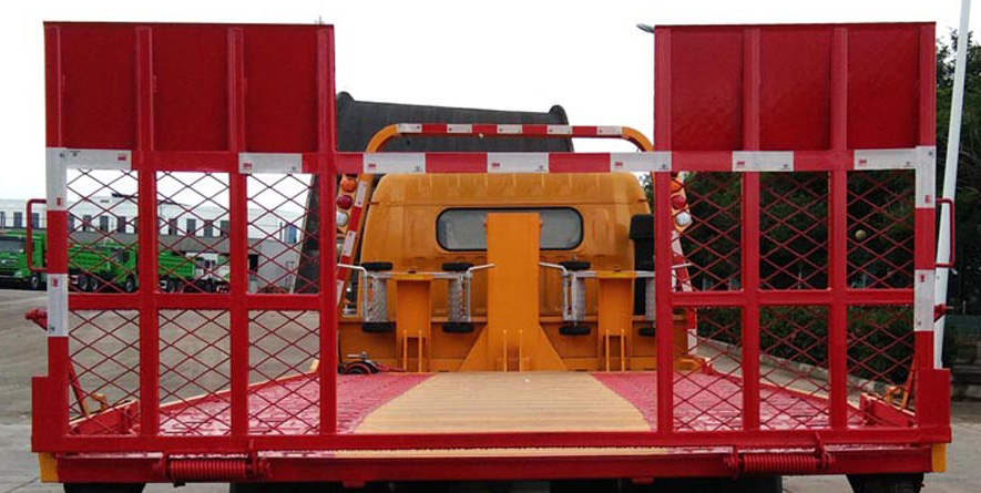 该车主要用于道路清障,主要专用装置为平板、托臂、绞盘、钢丝绳、油缸。准乘人数/托举质量(kg)对应关系为:2人/3570,3人/3505。侧防护材料为Q235,螺栓连接,后防护由专用装置代替,下缘离地高460mm。ABS型号/生产企业:XH-KQ4S4M-E01/广州市西合汽车电子装备有限公司,CM4XL-4S/4M/广州瑞立科密汽车电子股份有限公司,VIE ABS-Ⅱ/浙江万安科技股份有限公司。随底盘选装驾驶室,选装后视镜,选装前面罩,选装铝合金轮辋。选装龙门架样式,选装后尾板。后伸100mm。选装平板边框样式. |