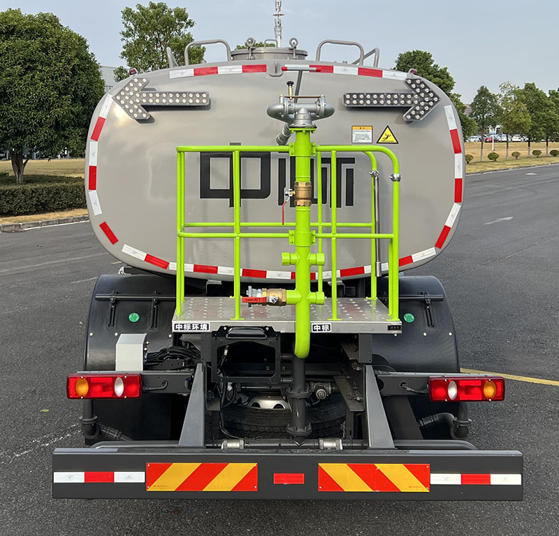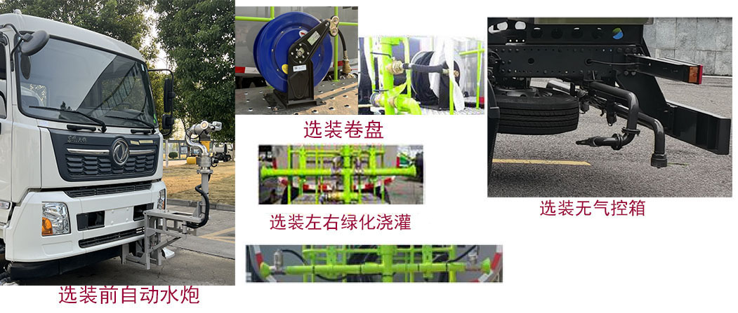 该车装有水罐、水路系统、清洗工作装置、作业平台、控制系统,用于清洗作业;罐体外形尺寸(长轴×短轴×长度)(mm):2405×1425×6125.罐体总容量16.1立方米,有效容积15.35立方米;该车标配时,整车长9650mm;选装前水炮时,整车长10430mm,前伸780mm;可选装卷盘,左右绿化浇灌,无气控箱;侧防护装置材料为铝合金,连接方式为螺栓连接;后部防护装置材料Q355B,连接方式为螺栓连接,截面尺寸为240×65mm,离地高度为455mm;随底盘装有ABS,ABS型号/生产厂家:3631010-C2000/东科克诺尔商用车制动系统(十堰)有限公司. |