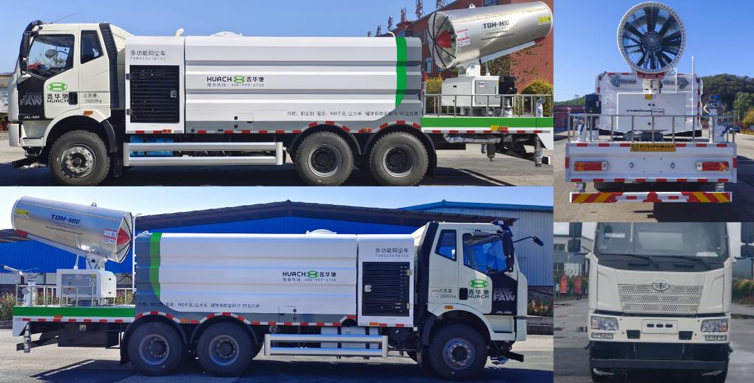 鑫华驰牌解放J6L后双桥国六12.55方多功能抑尘车的底盘型号为CA1250P62K1L3T1E6Z,底盘轴距为4350+1350,4800+1350,5300+1350,5800+1350,4100+1350(mm),轮胎规格为11.00R20,12R22.5,295/80R22.5,使用CA6DK1-26E6;CA6DK1-32E6;CA6DK1-28E6;CA6DK1-26E61;CA6DK1-28E61;CA6DK1-32E61;CA6DK2-32E65;CA6DK2-35E65;CA6DK2A28E65型号的发动机,排放符合国家环保要求,排放依据标准为GB17691-2018国Ⅵ,底盘运输可靠稳定。
