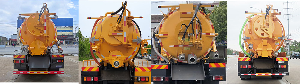 1.该车用于城市下水道系统的清洗梳理工作,是由该车将清水运输到目的地进行清洗工作并同时将清洗后的污水吸收运输离开,主要专用装置为污水罐和清水罐及吸排系统.2.当整车长度为7900mm时,后悬为2460mm,后伸为300mm, 罐体外形尺寸(总长×直径)(mm):5100×1800,其中罐体前段1500mm为清水罐,清水罐总容量3.3立方米,有效容积3.2立方米; 罐体后段3600mm为污水罐,污水罐总容量8.5立方米,有效容积8.2立方米。3.清水罐和污水罐为独立罐体,两罐不能同时满载;清洗功能时用清水罐,吸污功能时用污水罐.4.侧、后防护材料均为Q235,侧防护螺栓连接,后防护焊接连接,后防护截面高度尺寸200mm, 截面宽度尺寸60mm,下边缘离地高度450mm.ABS系统控制器型号/生产企业对应关系为:CM3XL-4S/3M(4SF)/广州瑞立科密汽车电子股份有限公司;XH-KQ4S3M-E01/广州市西合汽车电子装备有限公司.5.随底盘选装驾驶室.仅采用3900mm轴距.车辆后部罐体上安装作业指示灯,该灯在行驶过程中不点亮,仅作业状态使用.选装后部卸污口,选装后部液压盖,选装侧面爬梯. |