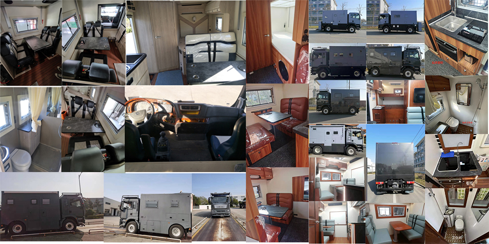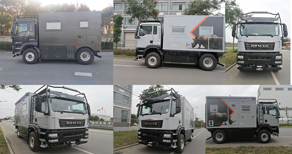 ABS型号:4460046300;ABS生产企业:威伯科(上海)管理有限公司;发动机净功率值:199kW;侧防护以车身结构代替,材料为Q235钢,侧防护离地高度320mm,后防护为120×60矩形管,材料为Q235钢,离地高度470mm。选装遮阳蓬,侧踏步,选装换气扇、太阳能板、两侧及后部选装舱门 ,厢体内部按旅居卧室布置,配置桌椅,卫生间,床具,卫浴和炊具。选装不同样式绞盘,该车可选装车载ETC装置. |