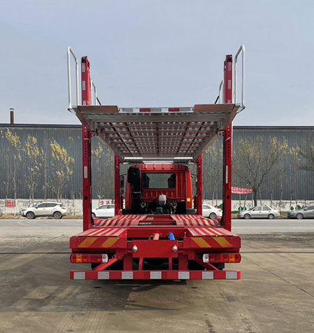 骏彤牌解放单桥国六五位板车辆运输车轿运车外观时尚,设计更加科学,外形尺寸为12000×2550×3900,3950(mm),整车的上户吨位为8070,8005,7570,7505(kg),总质量为18000(kg),上装的上层板和下层板之间的距离可以调整,以适应装载不同的车型;低合金高强度钢的上装材质的使用,让整车的质量更轻,承载力更强;采用进口的液压系统,操作简单,安全性大大提高。