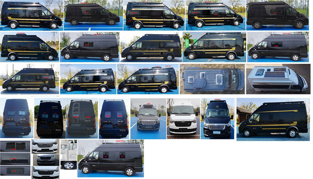 专用装置: 配备卧具、餐桌、空调、液晶电视、卫生间等旅居生活设施和娱乐设施。旅居车桌椅可以转换为卧具。随底盘选装镀铬进气格栅、前大灯,后尾灯,轮辋,进气格栅,后视镜,车身同色门把手及钥匙孔。选装不同内饰及布局,选装点歌机、麦克风、遮阳棚、空调、微波炉、洗衣机、前后左右摄像头、升降床。车顶可选装行李架、换气扇、太阳能发电装置、顶置空调、卫星天线、顶部导流罩、驻车宿营照明灯;侧窗可选装盲窗、外推窗、侧拉窗、粘贴窗;车身选装遮阳蓬、注水口、外置淋浴器、散热格栅、车身彩条、外接电源充电插座、舱门、电动上车踏板;选装车辆尾门爬梯;车顶不选装设备或选装柔性太阳能板车高2580mm,选装矮款换气扇车高2630mm,选装天窗、双向换气扇、行李架车高2690mm,选装卫星天线、顶置空调车高2820mm,选装低顶空调2790mm;尾部不选装设备或选装尾门爬梯车长5998mm;选装直接供电式ETC车载装置,侧、后防护以车身结构代替,材料为金属.侧防护离地高420mm,后防护离地高440mm,ABS系统控制器型号: EV7021,生产厂家:博世汽车部件(苏州)有限公司,发动机最大净功率为101kw |