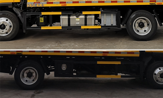 1.该车不具备拖牵功能.该车主要用于道路清障,专用装置为平板、绞盘、钢丝绳、油缸.侧,后防护材料均为Q235, 侧防护螺栓连接和焊接连接;后防护焊接连接,截面尺寸100×50mm,下边缘离地高460mm.ABS型号/厂家:CM4XL-4S/4M /广州瑞立科密汽车电子股份有限公司.仅采用底盘3365mm轴距.整备质量包含灭火器、停车楔,不含备胎。选装车辆左侧安装洗手箱,选装护轮板样式。选装侧防护样式。 |
