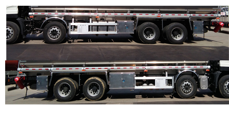 有效容积28立方米;罐体外形尺寸(长×宽×高)(mm):9000×2400×1700,运输介质:汽油,类项号:3,介质密度为700千克/立方米,该车型为FL型车辆,随底盘选装驾驶室,该车安装前轮盘式制动和限速装置,限速80km/h. ABS生产厂家:东科克诺尔商用车制动系统(十堰)有限公司,型号:3631010-C2000,选用子午线轮胎;安装具有卫星定位功能的行驶记录仪;侧防后防采用Q235材质焊接在大梁上.后防护断面尺寸(mm):50×160.后防离地高为520mm.发动机为ISL9.5-292E51A,ISL9.5-315E51A,ISL9.5-340E51A对应油耗值(L/100km)为40.5,41,41.7.选装工具箱 |