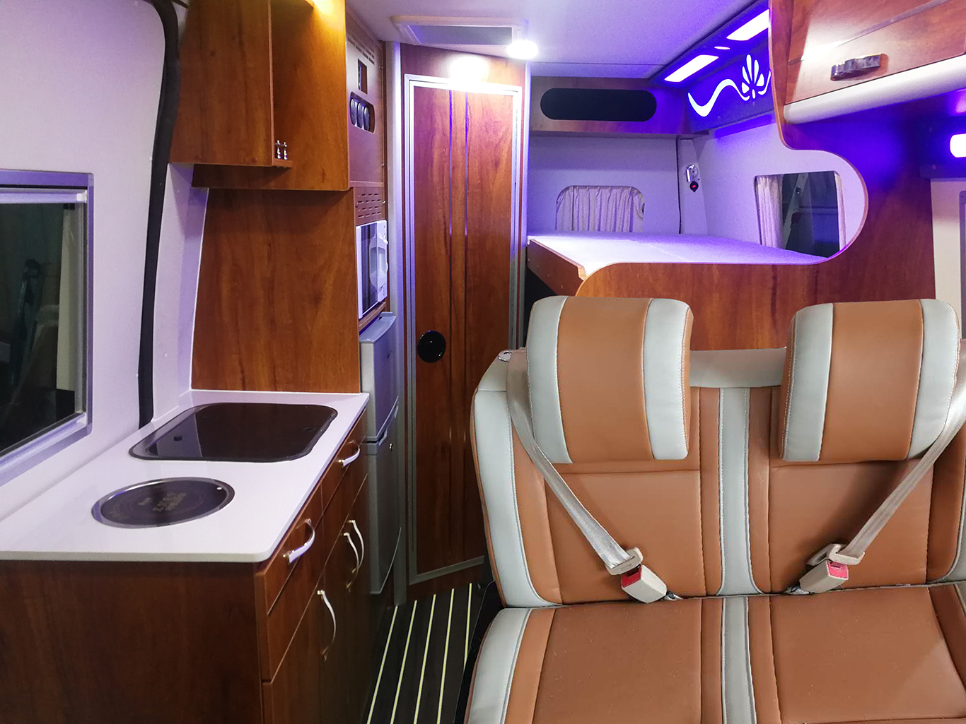 中恒旅牌依维柯国六B型旅居车在外型简约时尚,整体轮廓硬朗饱满,整车外形尺寸为5900,5495,5670×2040×3000,2726,2870(mm),房厢内部设计科学合理,车窗均配有遮阳帘,这样可以保护车内人员的隐私;车身采用轻量化材料制作而成,在减轻车重的同时也优化了车身轻度。