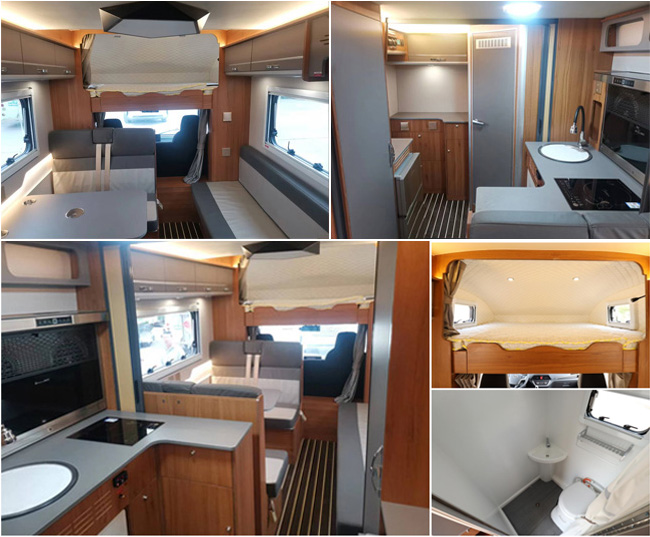 该车装配睡具,炊具,卫生设施等设备,用于旅行宿营。仅选用驾驶室后围有贯通开口的底盘改装。仅使用3308轴距。随底盘选装前部灯具和侧转向灯,选装驾驶室围面板和格栅,选装前保险杠外观,选装轮辋外观,选装轮眉。车辆侧、后防护均采用裙边结构,侧防护离地高350,后防护离地高500。ABS控制器型号/生产厂家:YF8/武汉元丰汽车电控系统有限公司;发动机最大净功率67kw。该车型选装采用直接供电式的ETC车载装置。选装天窗,选装窗户及舱门样式。 |
