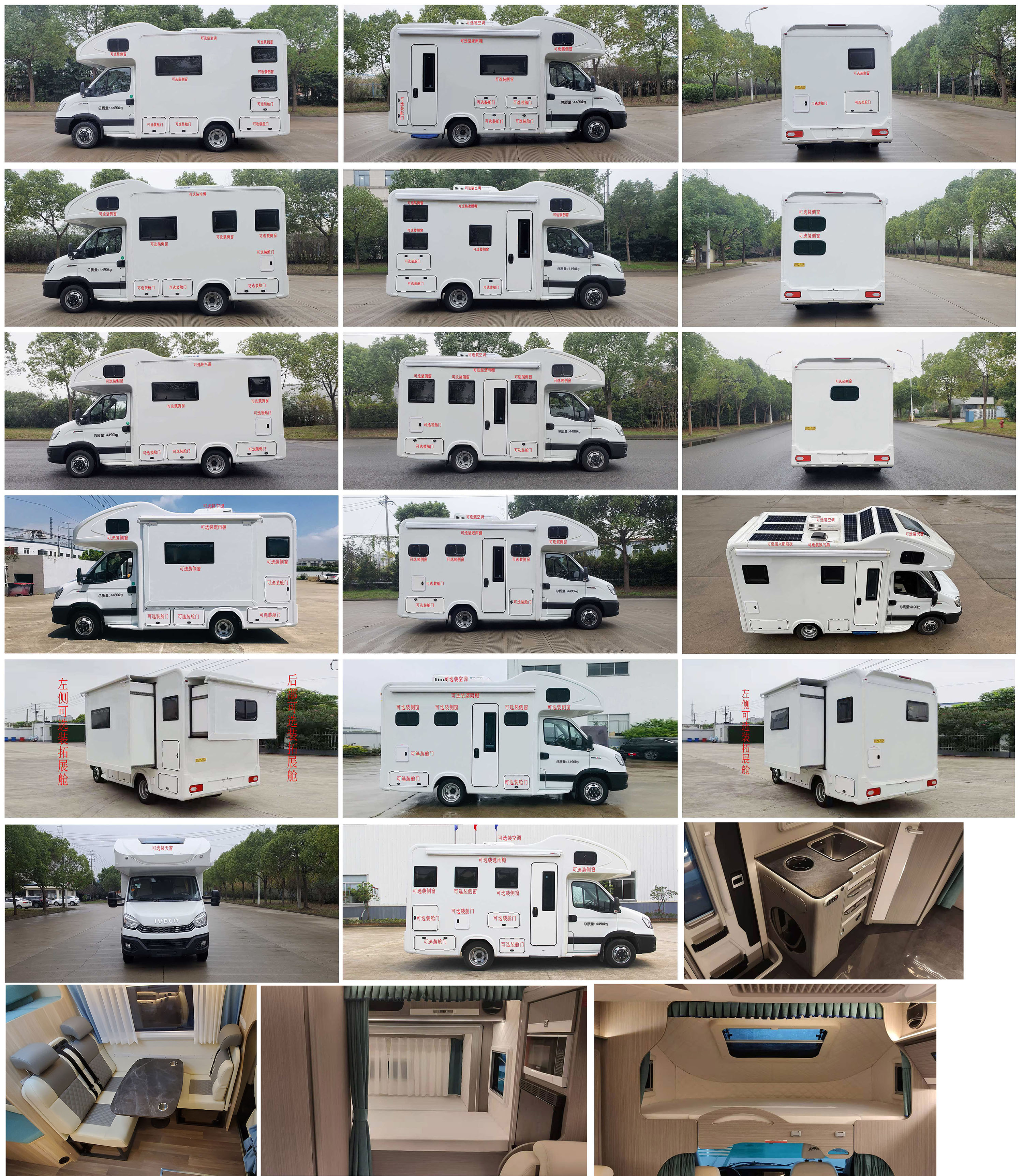 该车主要用于外出旅游居住,方便出行;本车型装备桌椅,睡具,炊具,卫生设施等设施,ABS系统控制器型号:BOSCH ABS9、BOSCH ESP9, ABS系统控制器生产企业:BOSCH公司,选装描述:选装不同的顶置空调可引起车身高度发生变化,对应整车高度为:3030mm, 3090mm,3150mm,可取消顶置空调,安装不同的卫星天线或顶置换气扇,对应车高为:2870mm,2950mm;车顶可选装天窗、卫星天线、太阳能电池,左右两侧均可选装遮阳篷;车身两侧或后部可选装封闭部分窗户、舱门,车身前部格栅可选装装饰条;可选装内部装饰布局;选装单座椅;车辆左侧可选装仅在未行驶状态下使用的拓展舱,车辆后部可选装仅在未行驶状态下使用的拓展舱;该车以裙边结构作为侧、后防护,后防护下边缘离地高度420mm;该车型可选装ETC车载装置. |